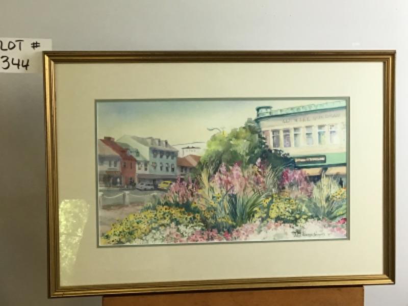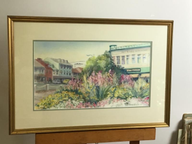 344 Framed Original Watercolor "Downtown Flowers"  by Jean Ranney Smith “˜97