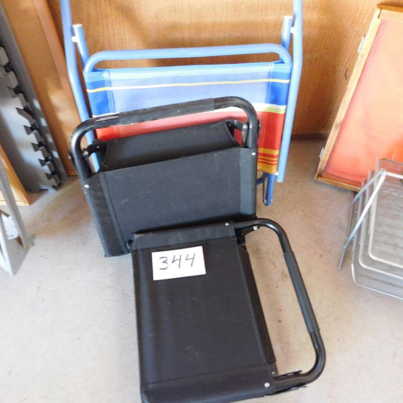 344. Pair of Cascade Mountain technologies heavy duty bleacher folding chairs plus one folding chair