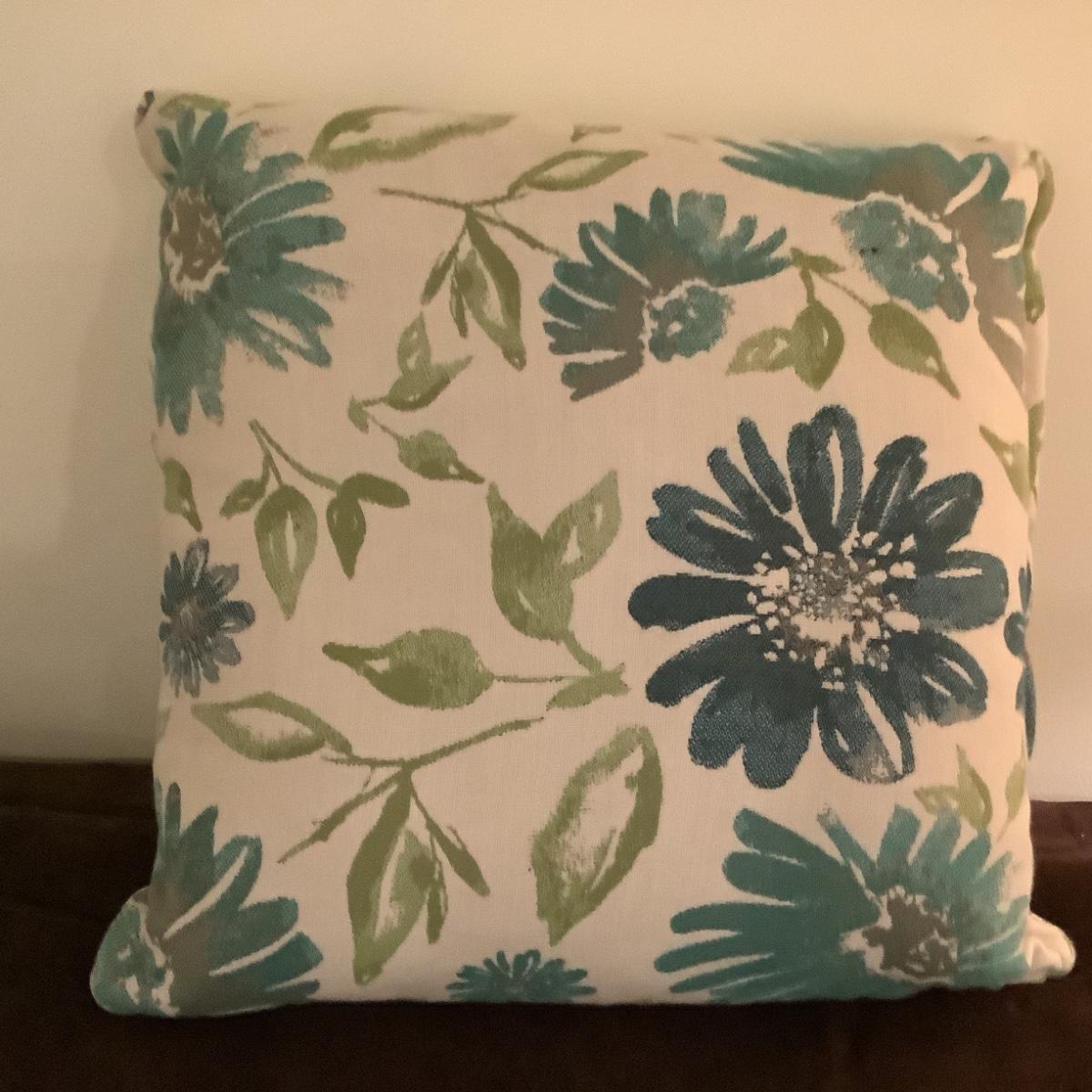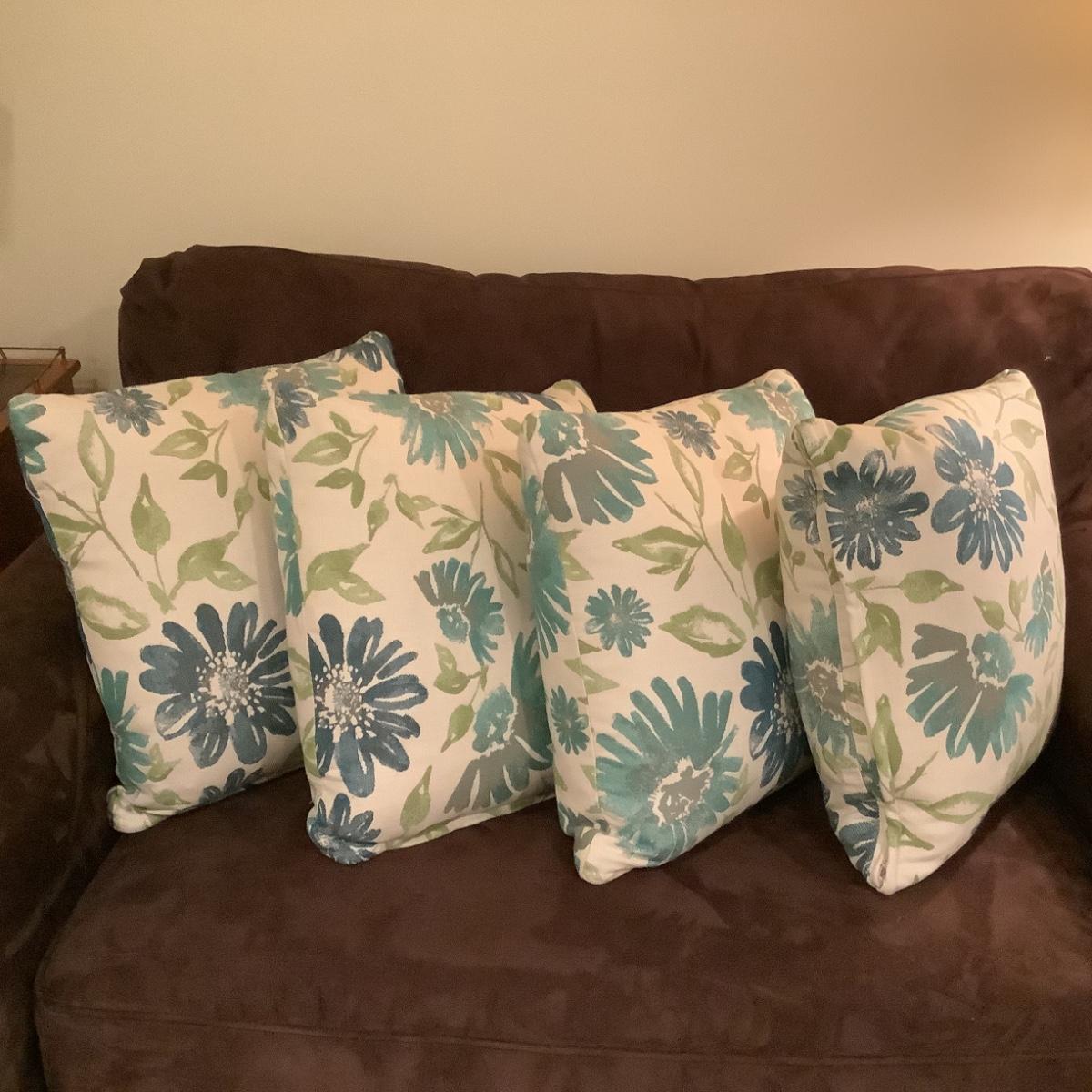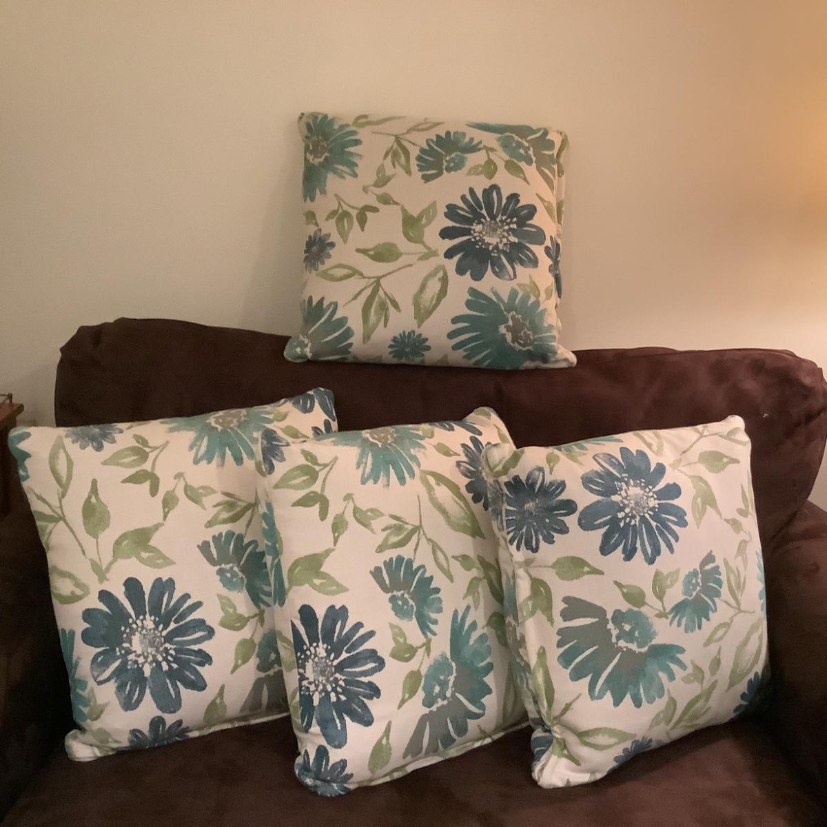 344 Set of 4 Blue Green Floral Down Filled Pillows