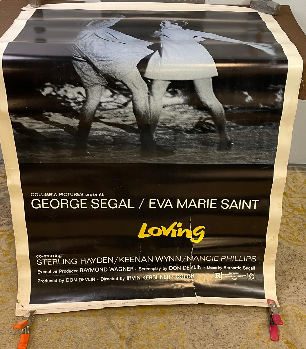 Collectible! George Segal Has Damage and a taped repair on the bottom 1/4. Original. 40 X 61 Some Wrinkles. Good Candidate for restoration.