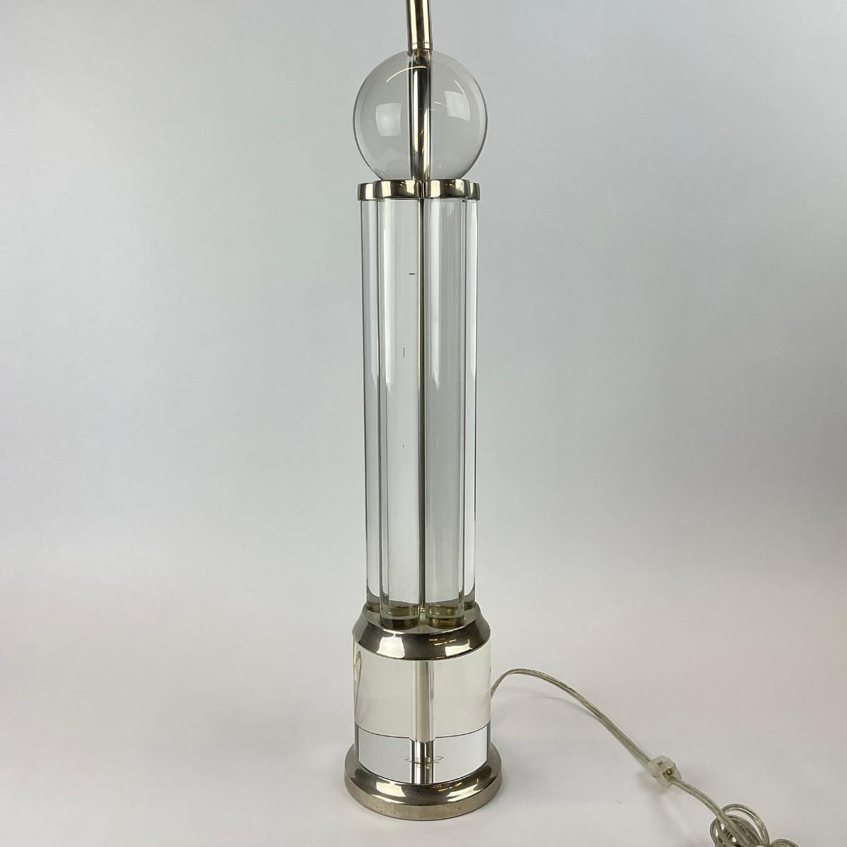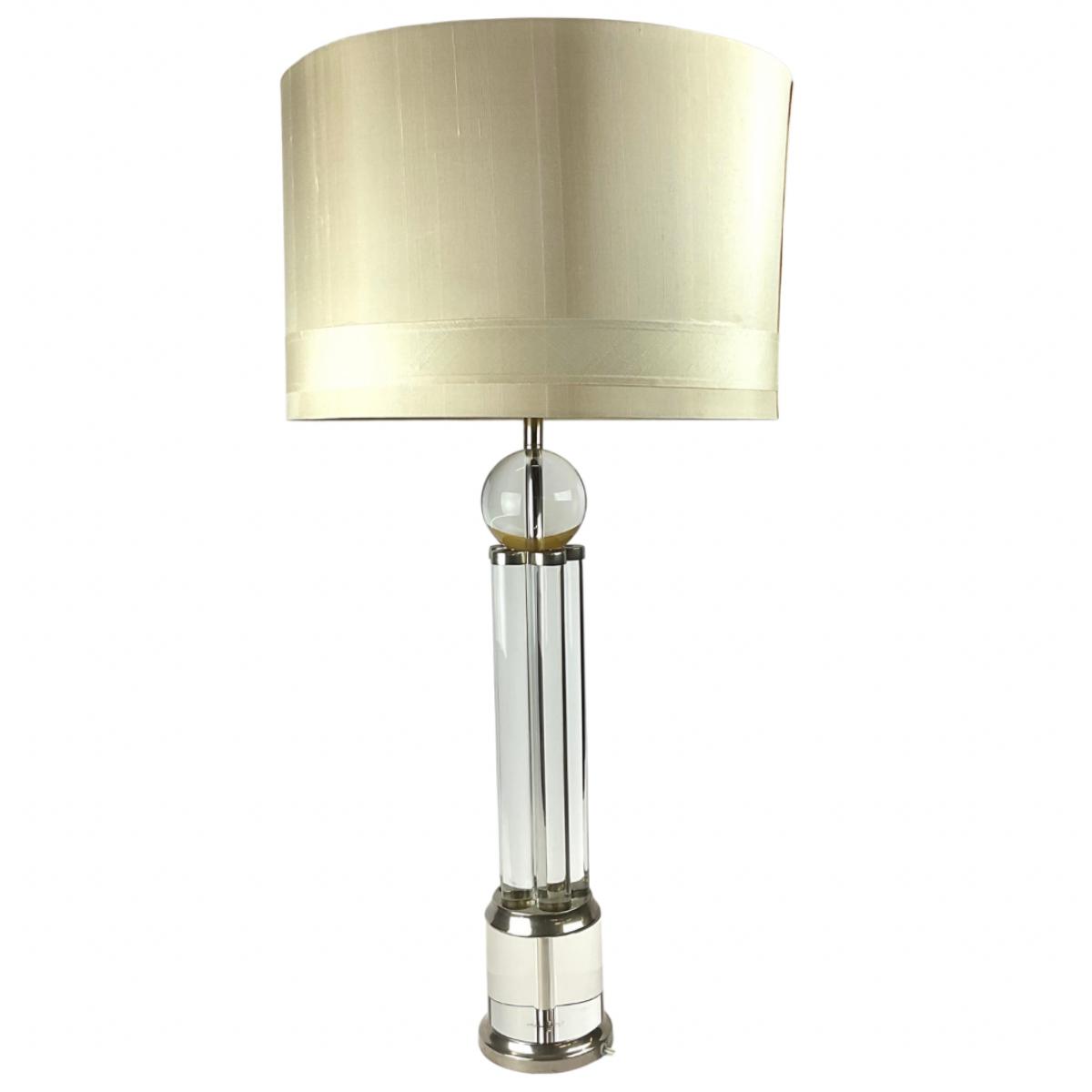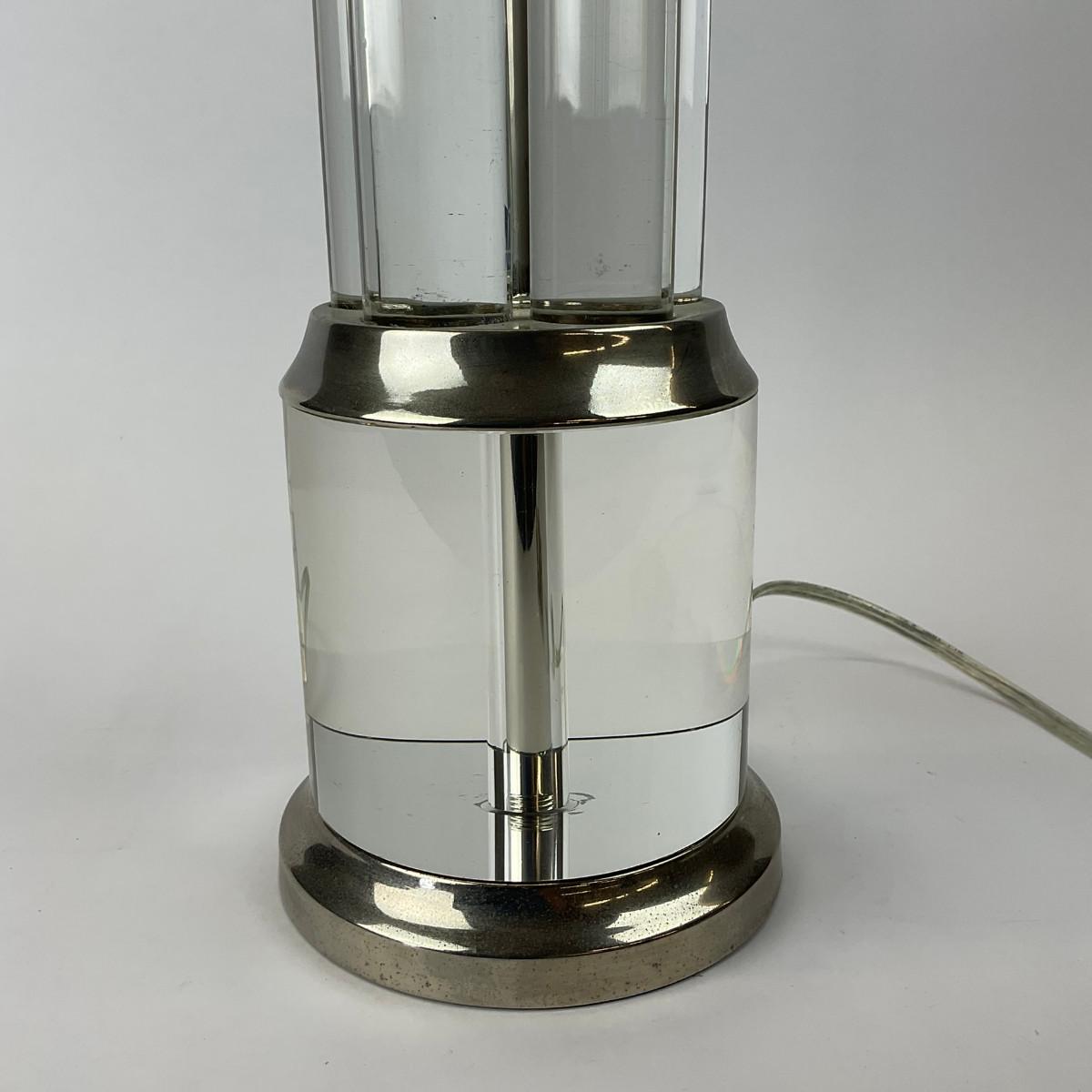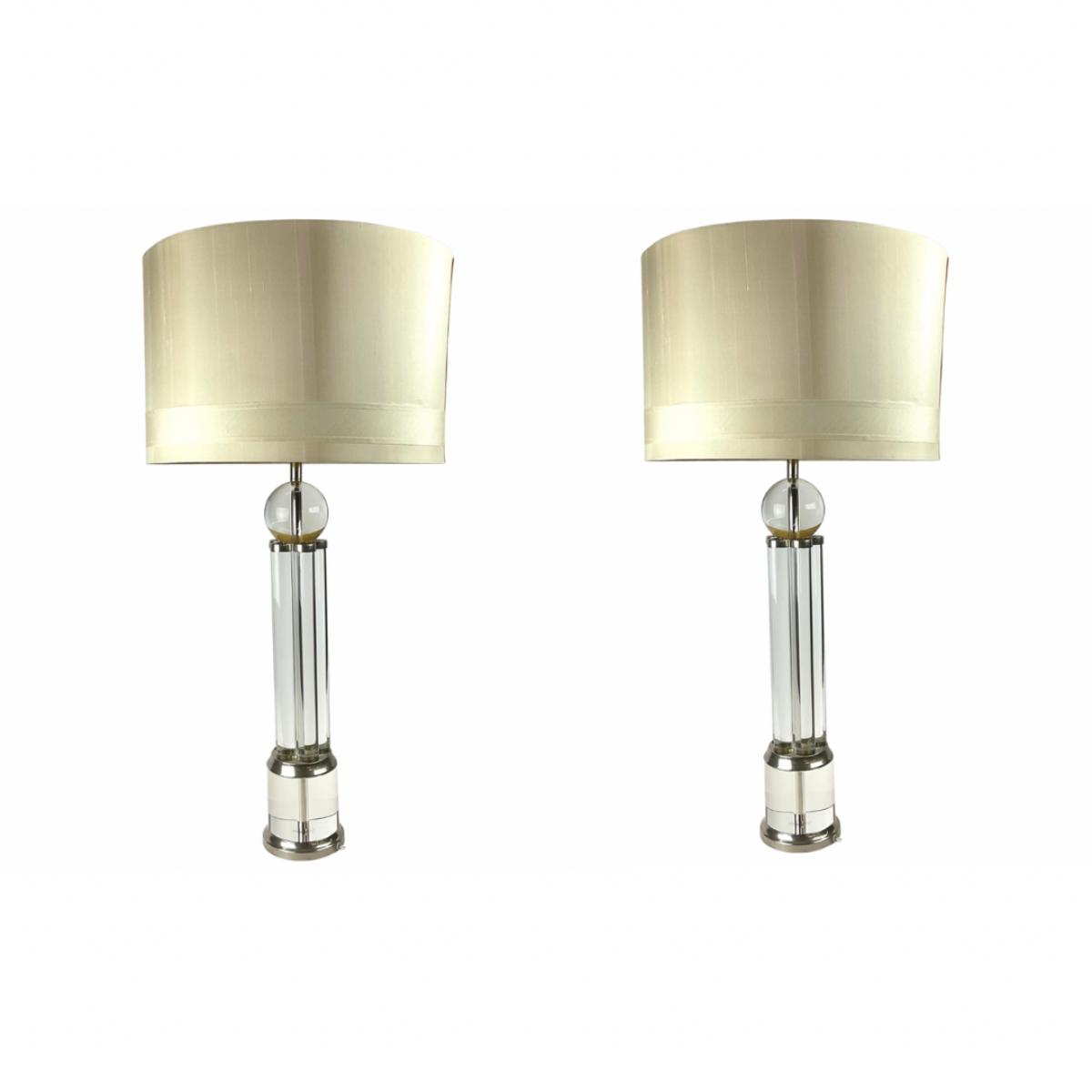 346 Pair of Large Modern Glass and Chrome Table Lamps by Global Views