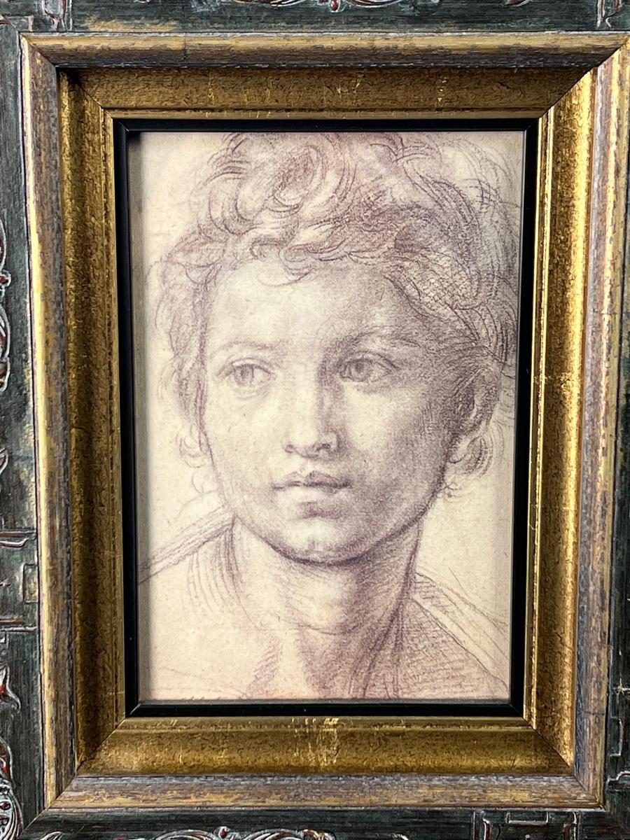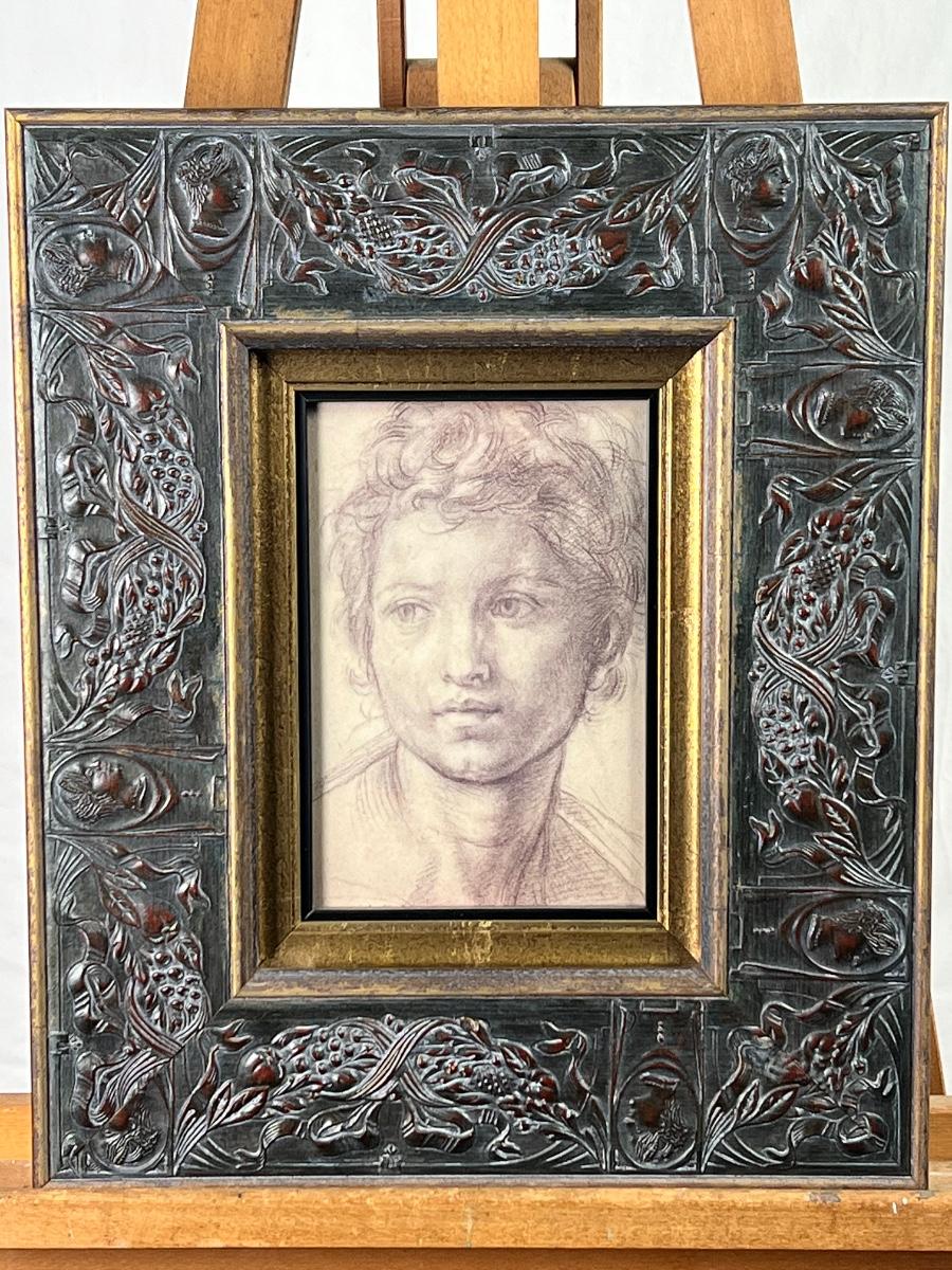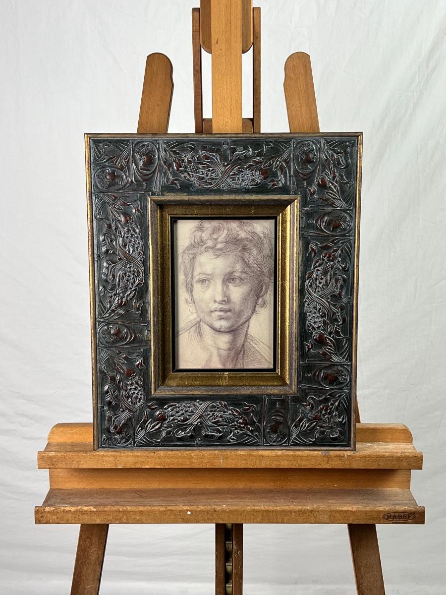 346  Pencil Portrait of Girl Framed in Heavy Wooden Frame