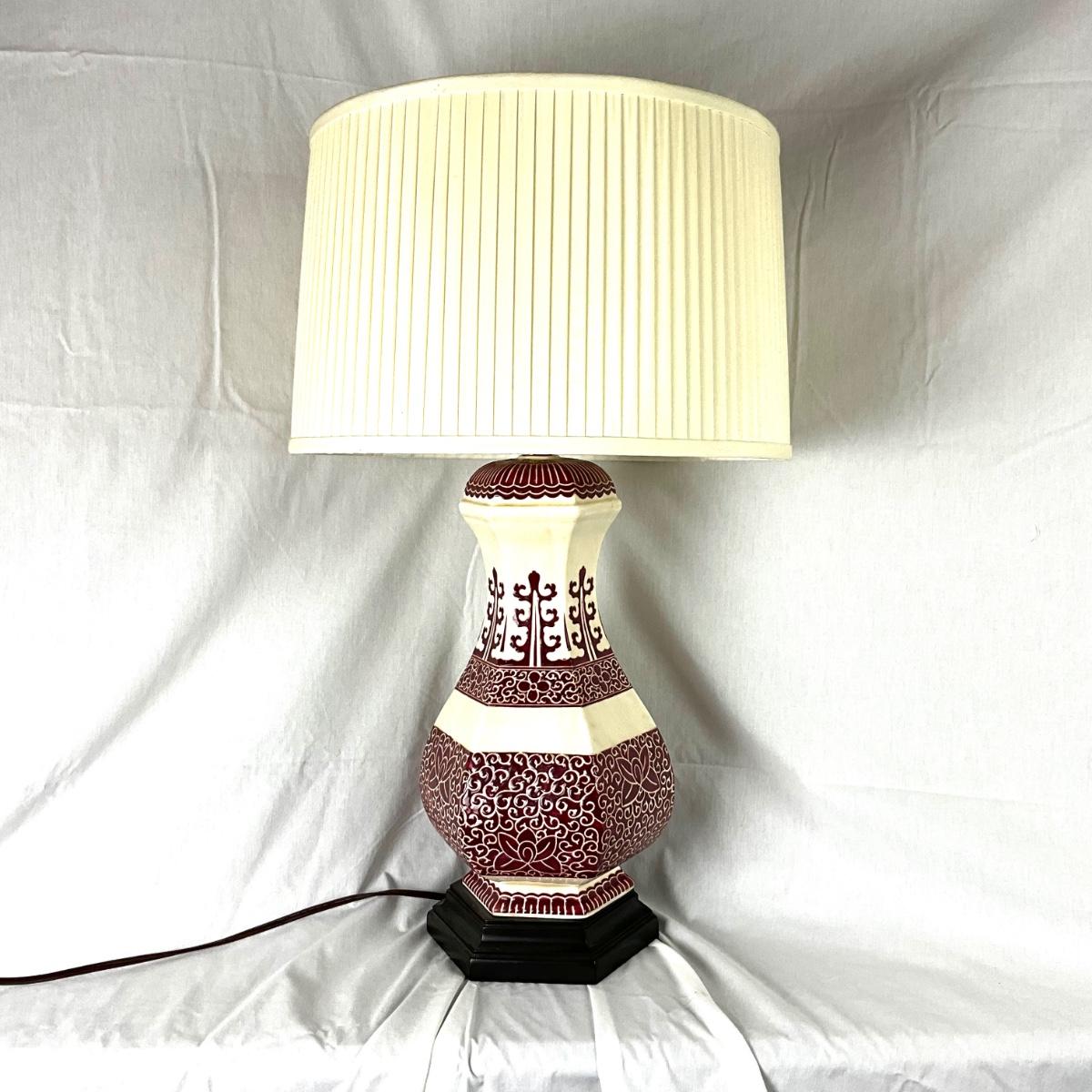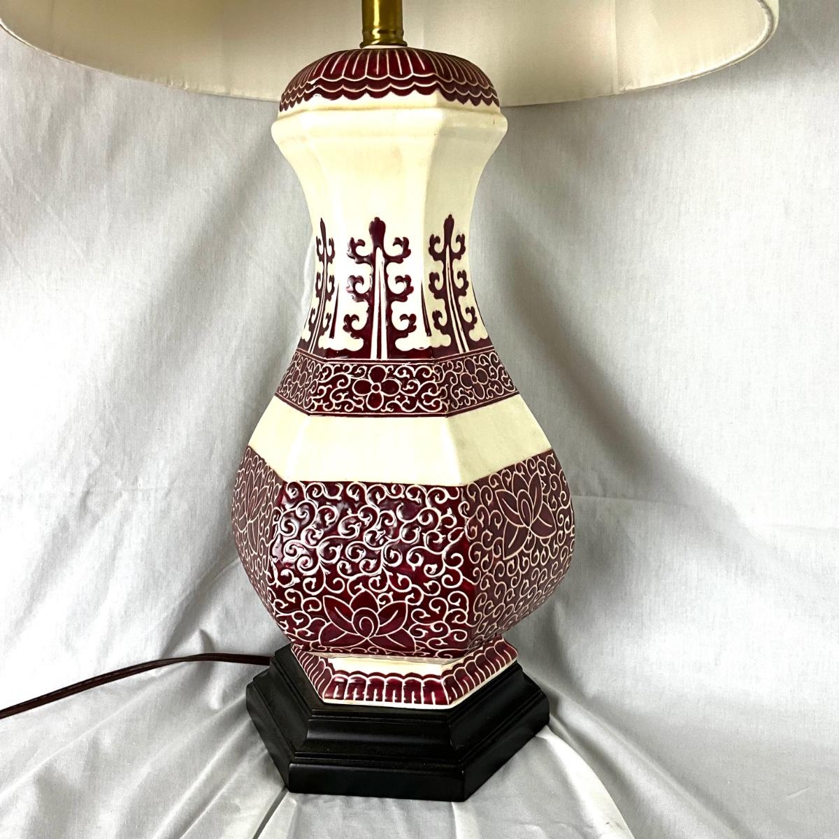 347Vintage Oriental Accents Burgundy and Creme Pottery Asian Style Lamp