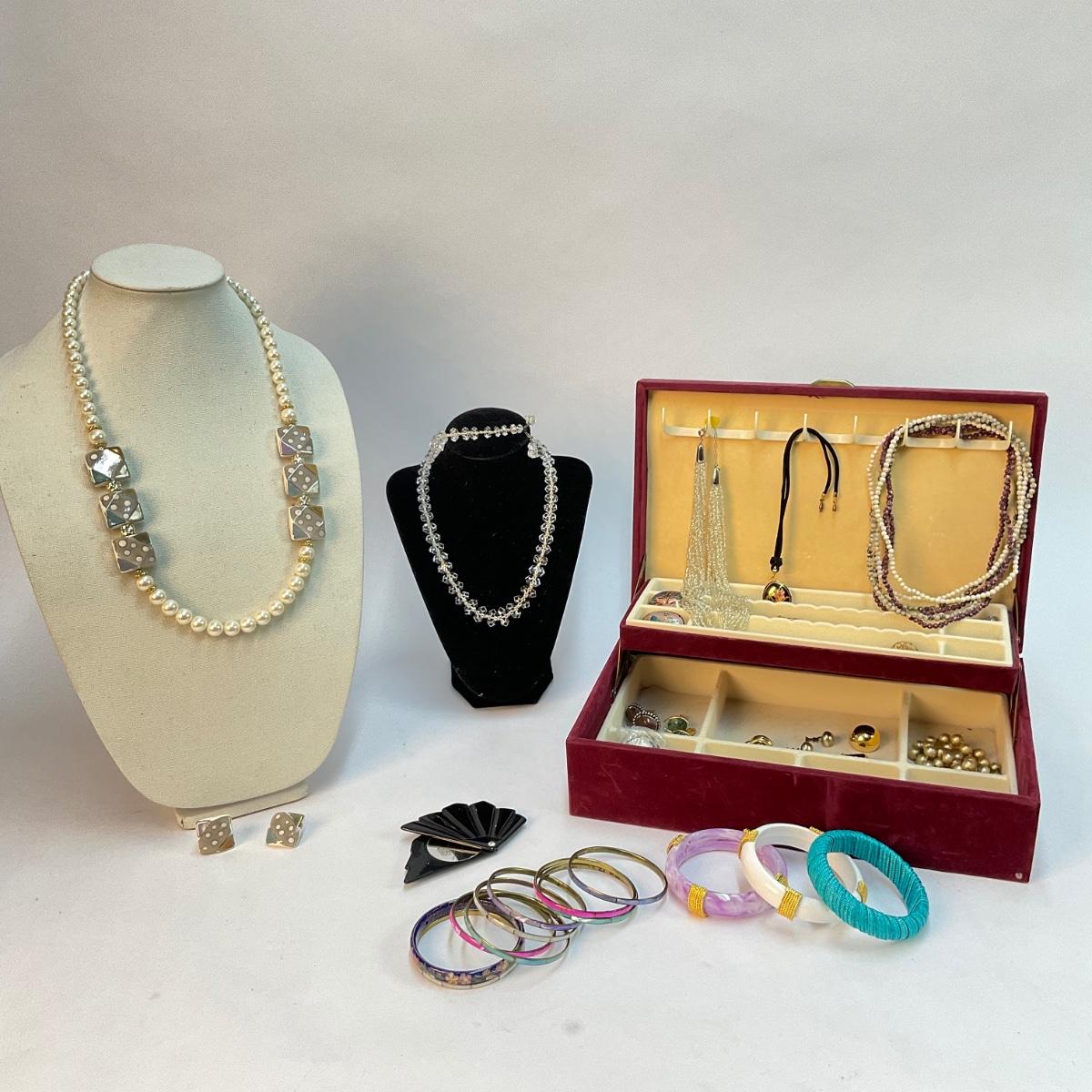 254 Assorted Bracelets, Glass necklace & Bracelet set, clip on earrings