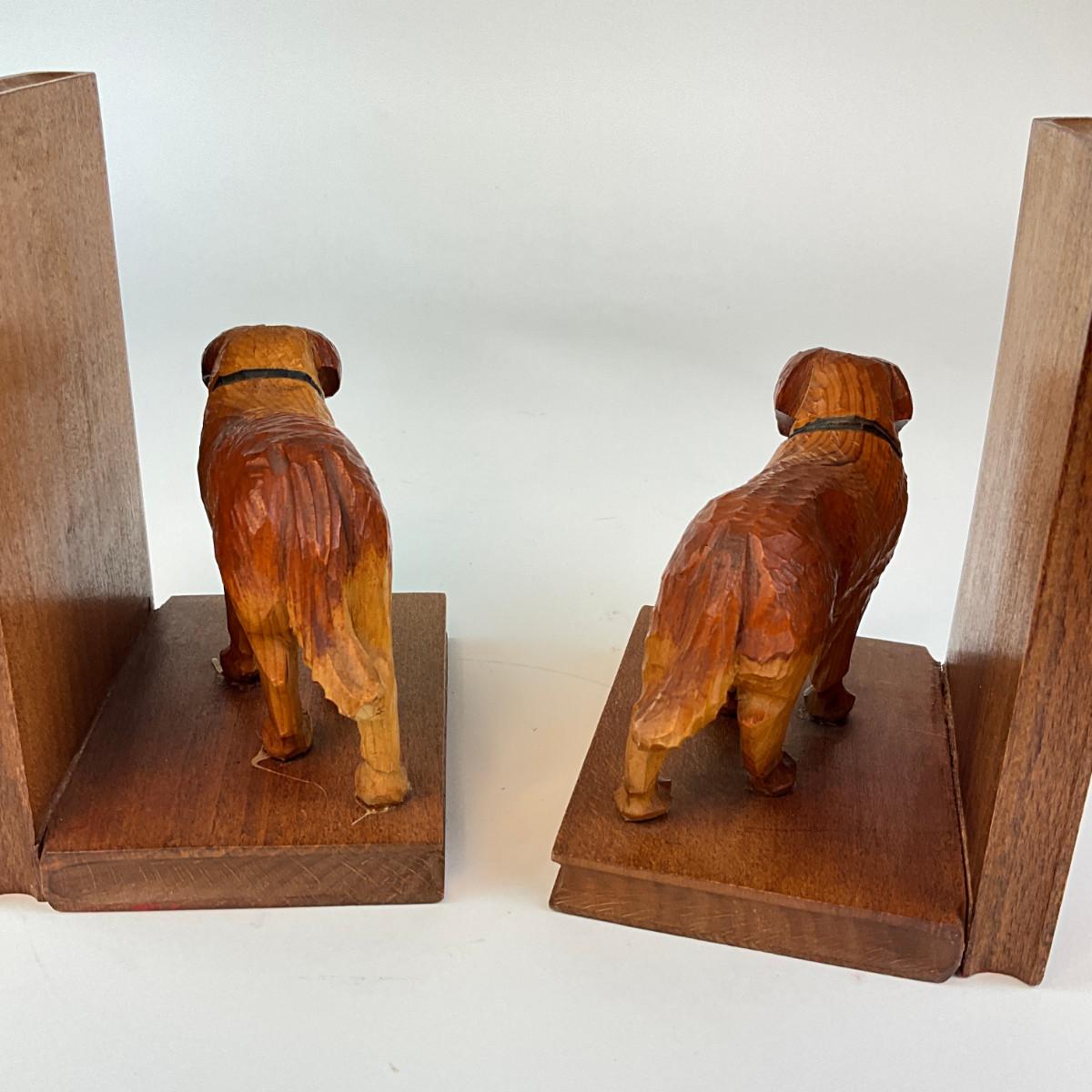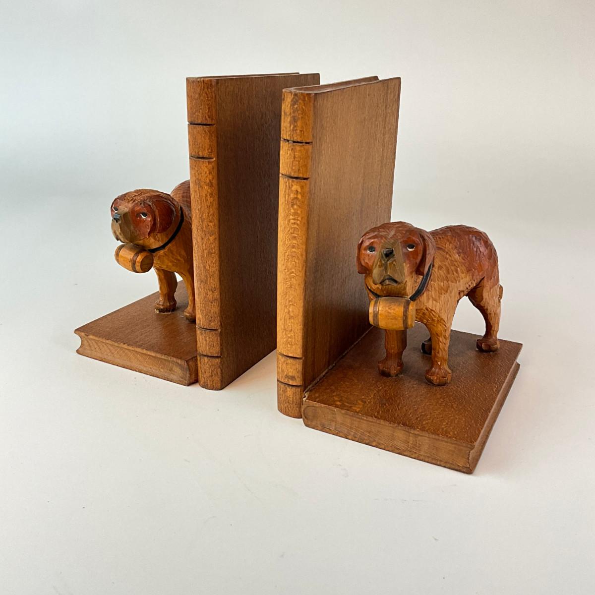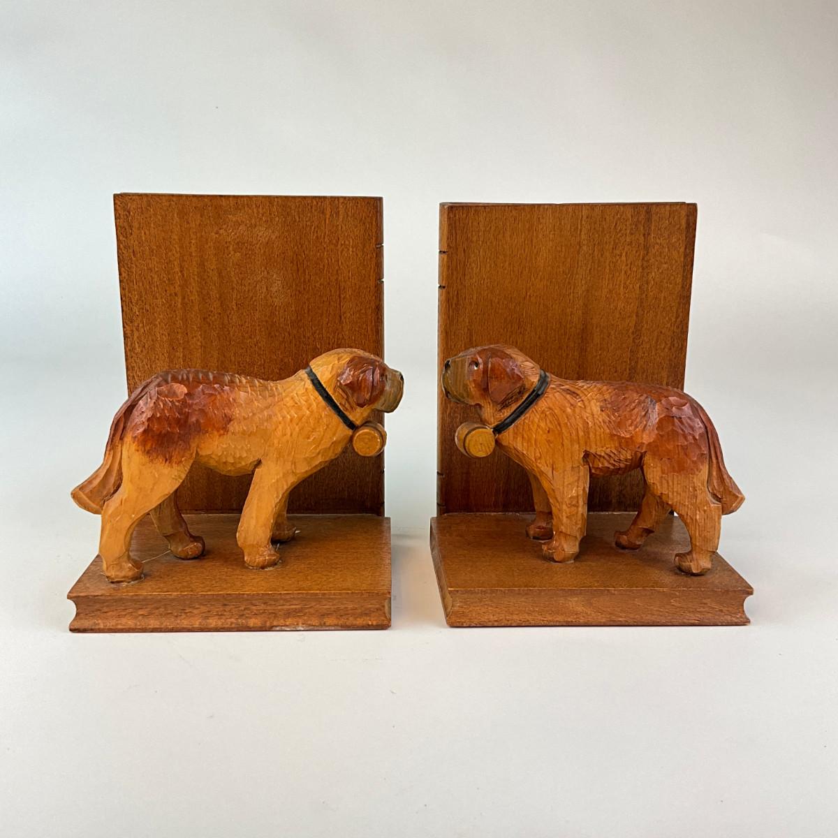 347 Hand Carved Saint Bernard With Barrel Book Ends