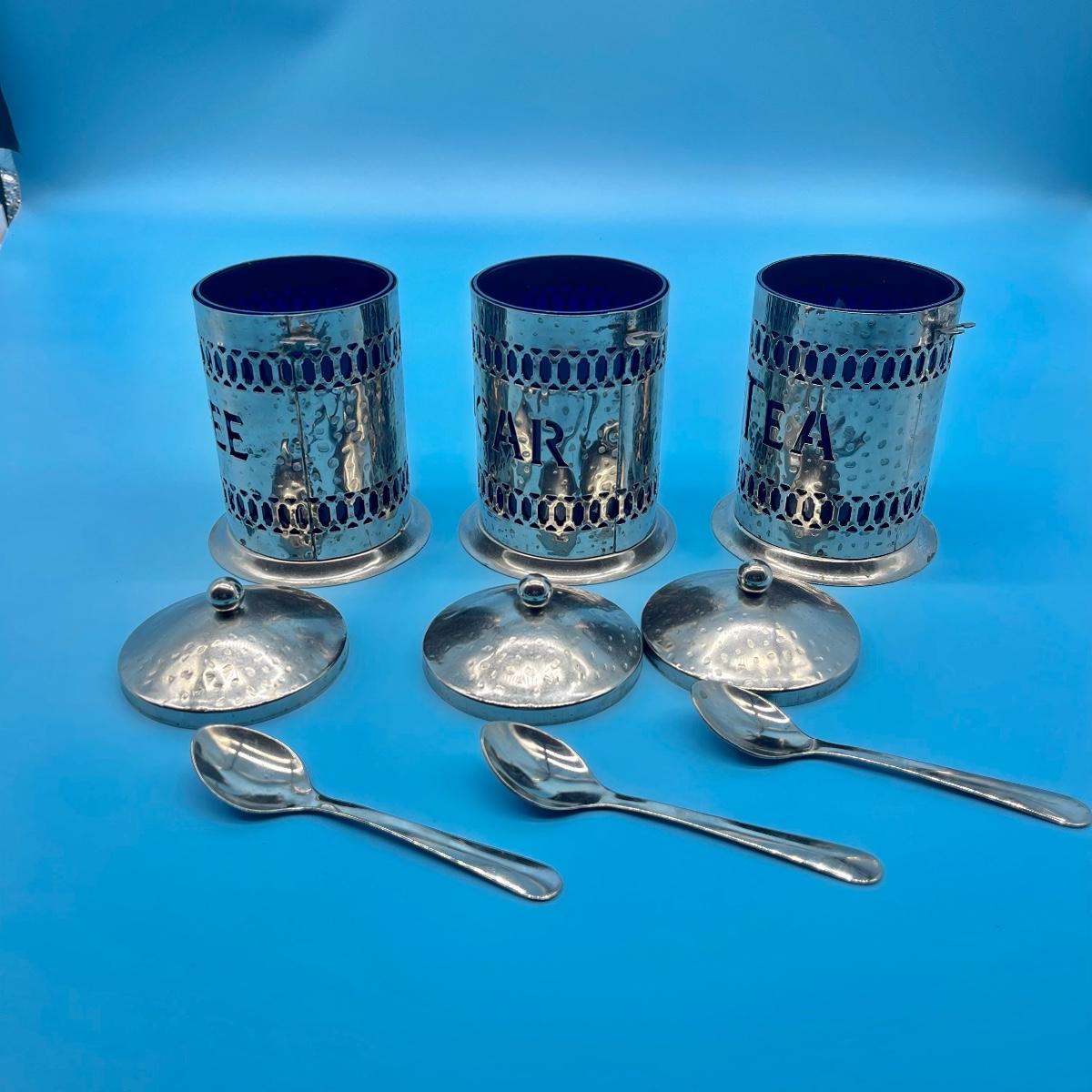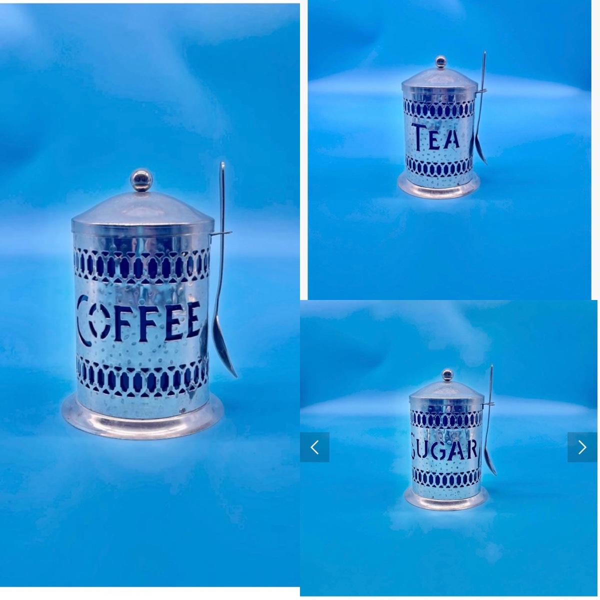 #348 Hammered Metal Coffee, Tea & Sugar Containers