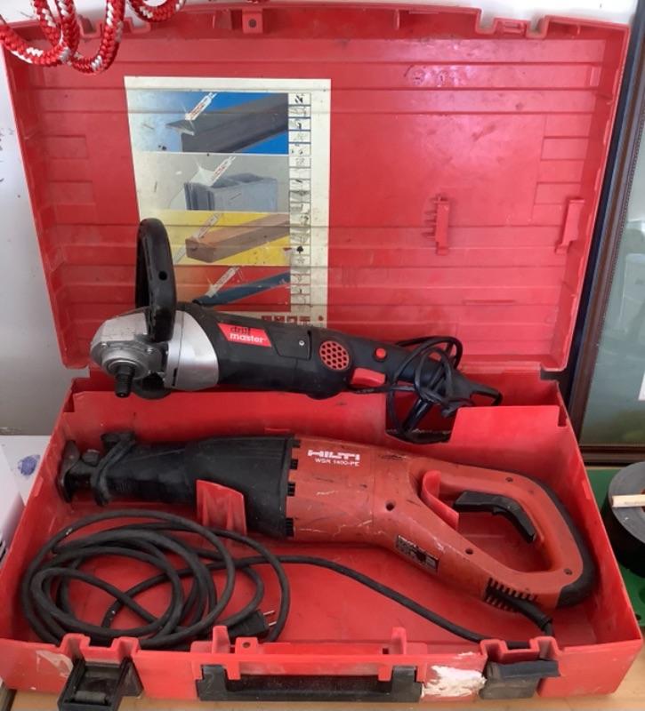 Hilti WSR 1400-PE reciprocating saw with case and blades and a Drill Master Polisher/Sander