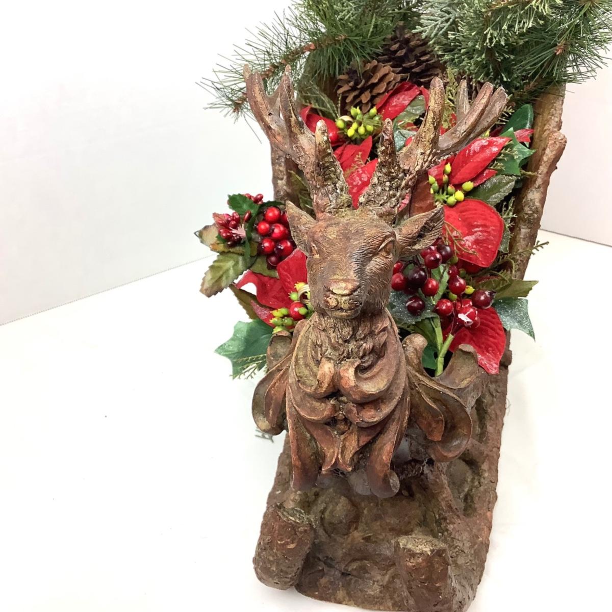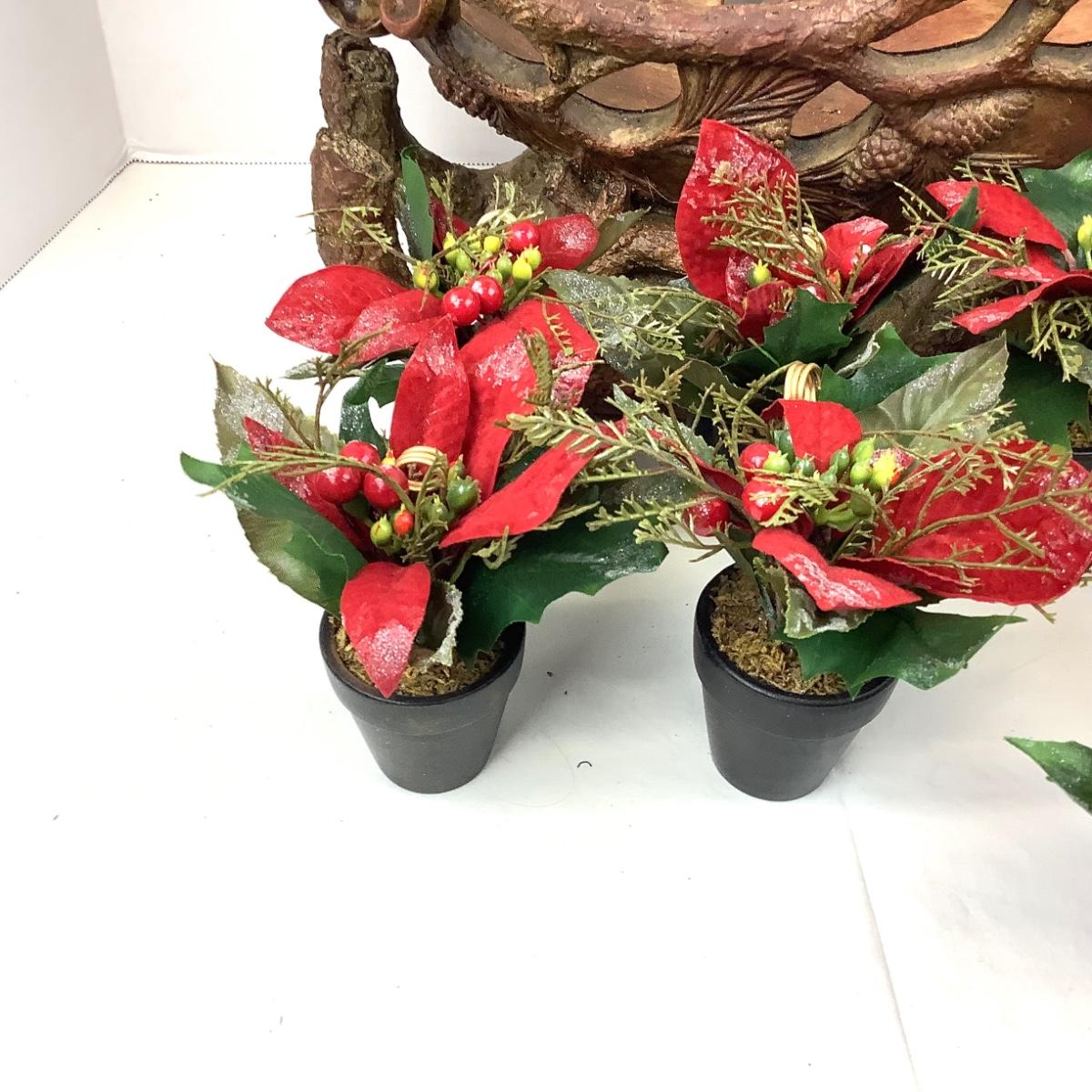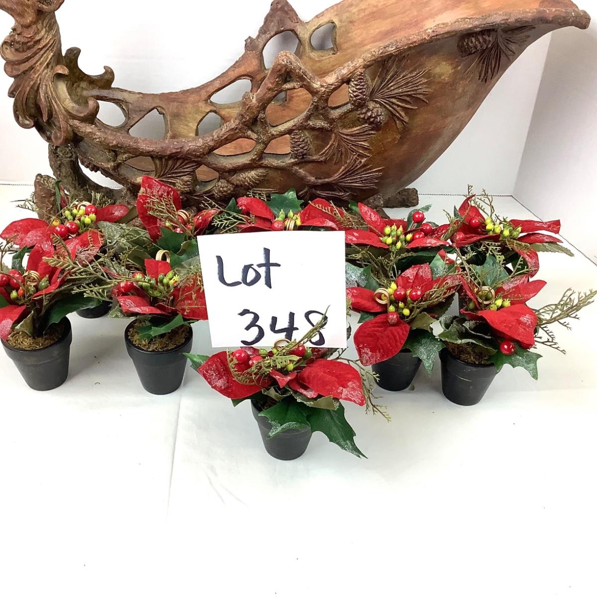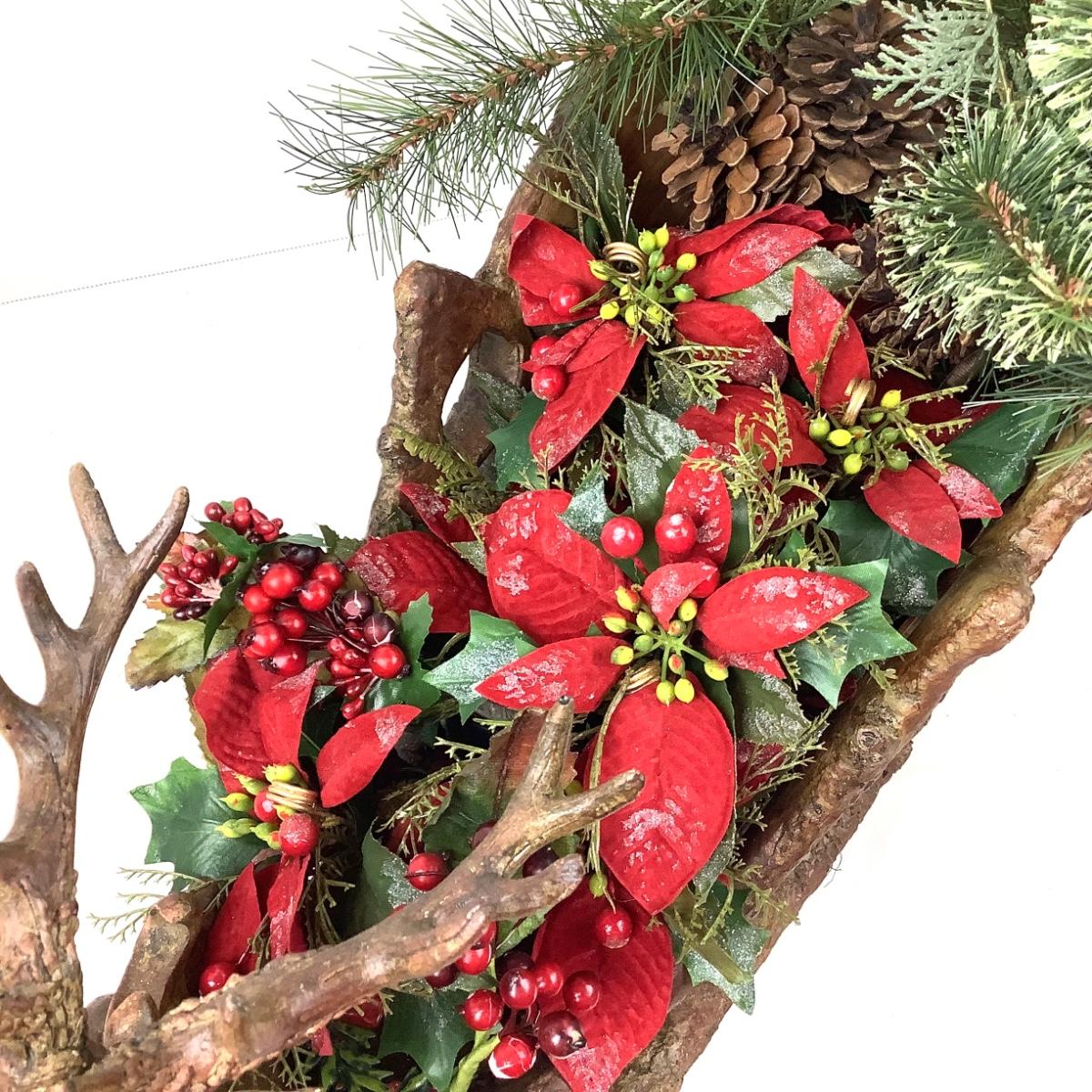 348 Large Sleigh, Faux Greens, Poinsettia Place Card Holders