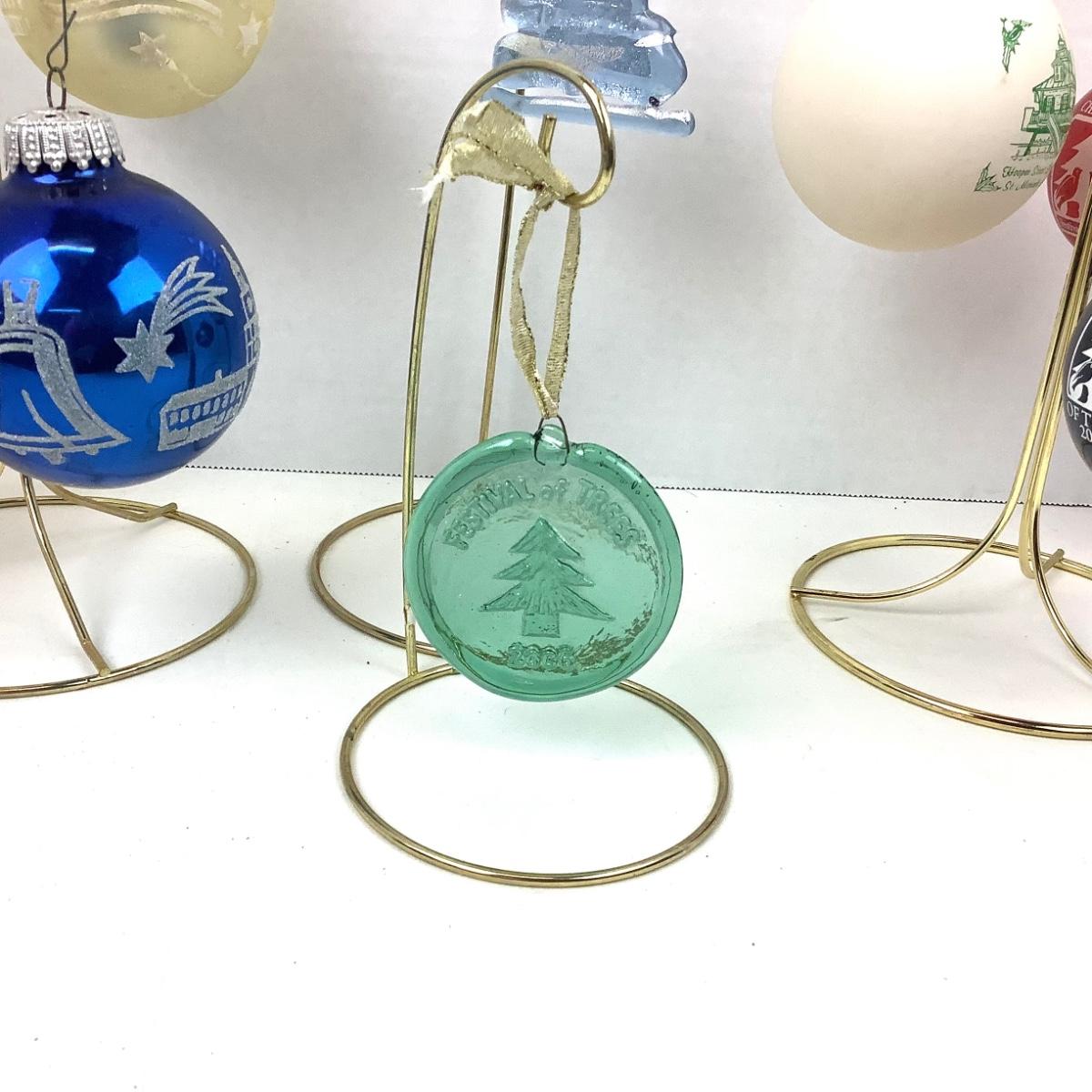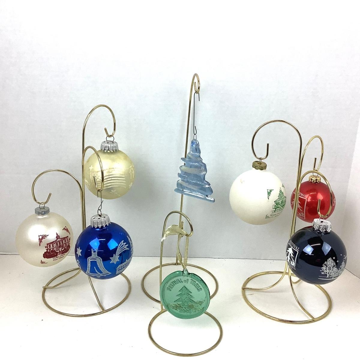 There are 8 ornaments in this lot, several from Festival of Trees (1987,2006,2013) and 2 from Christmas in Talbot Co. (1988,1989) they range in sizes from 2"-4".