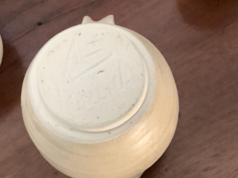 349 Pottery Cream and Sugar with Teacups and Tray Signed ALJ