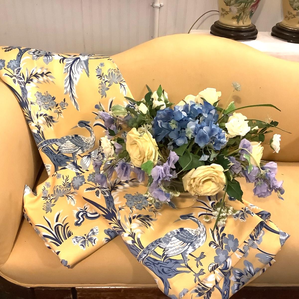 349 Three Lined Half Moon Yellow and Blue Panels with Faux Arrangement