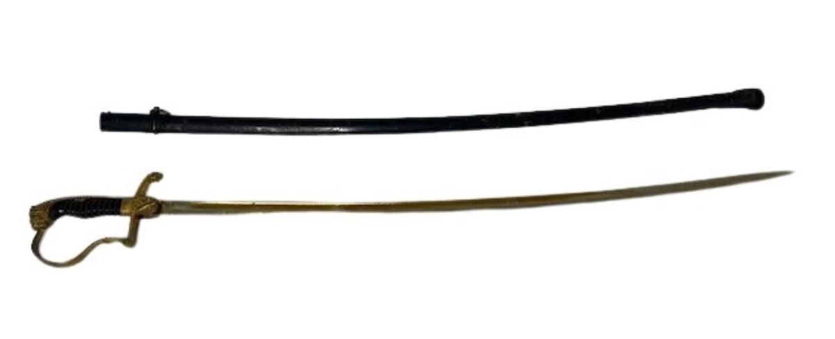 Stamped "Waffenfabrik Solingen." Believed to be original scabbard. Believed to be Bakelite pommel. Has cosmoline on blade. Measurement: 33" (blade); 38"L (overall). [KA]