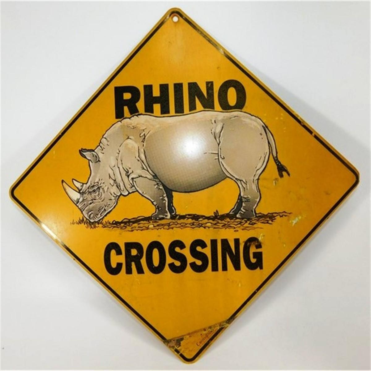 35 27" Large Stuffed Rhino with 12 x 12" Rhino Crossing Sign