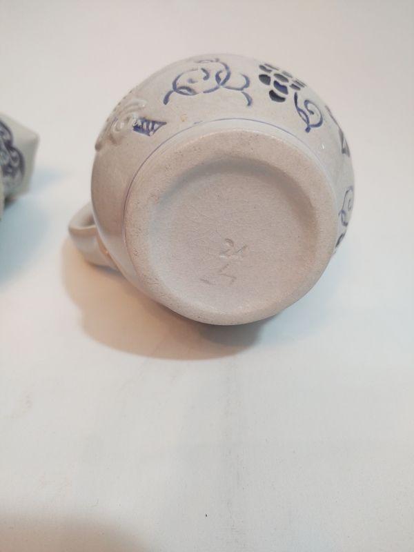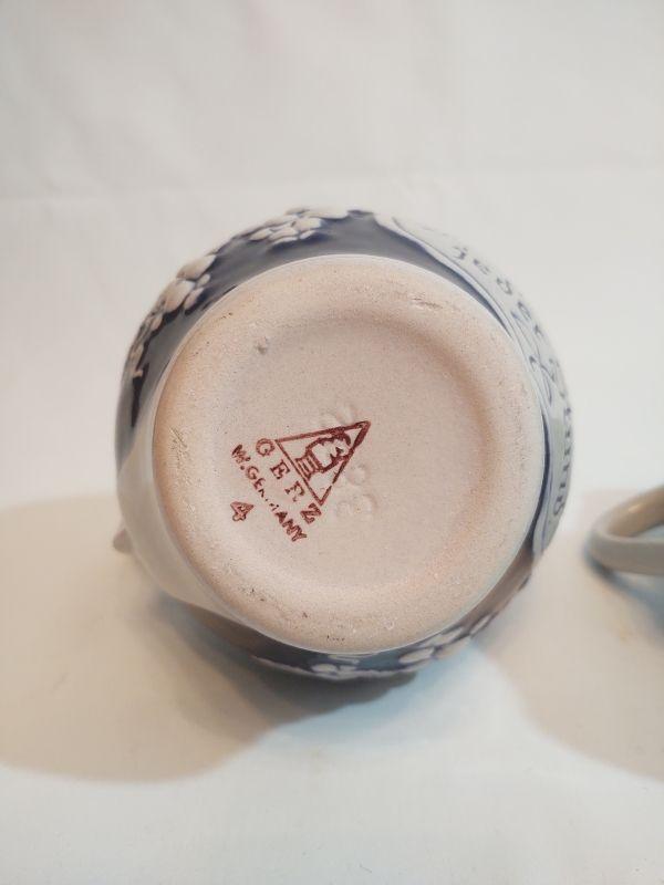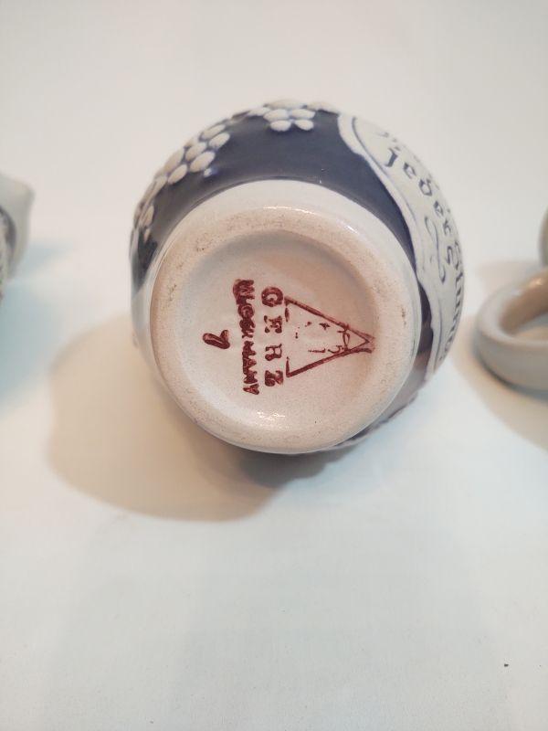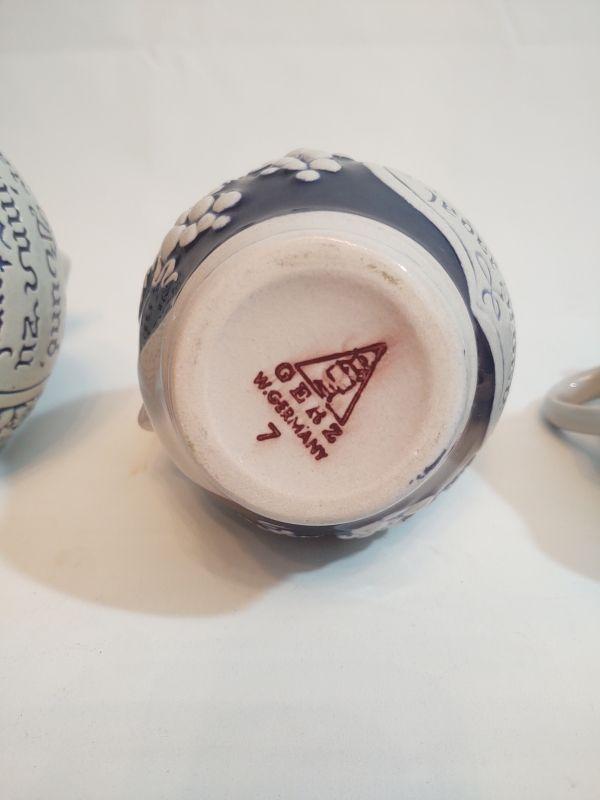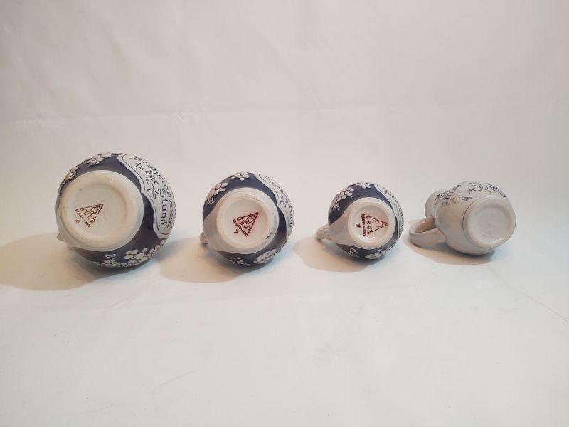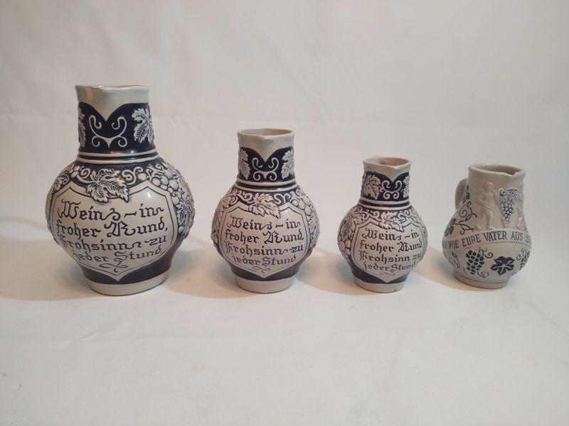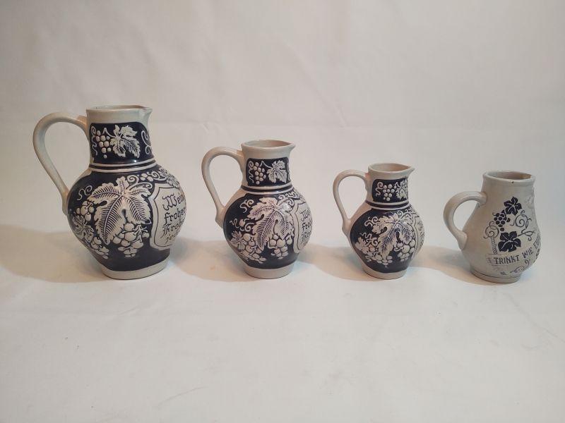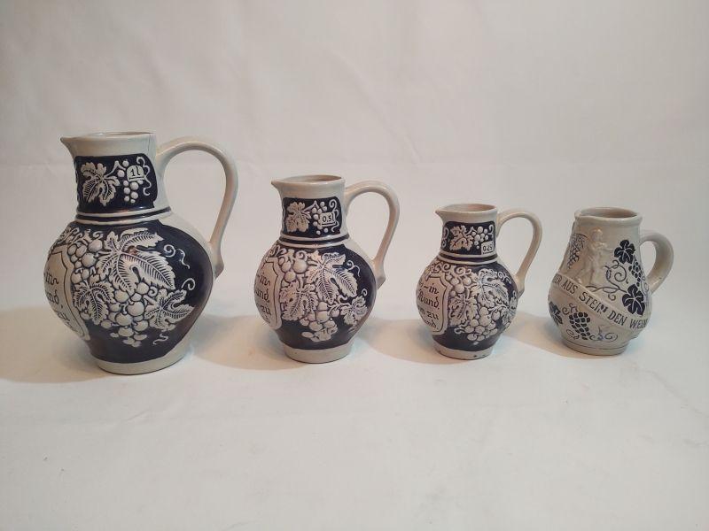3 pitchers are of the same manufacturer and the one on the right is from a different maker. Marks are on the bottom.