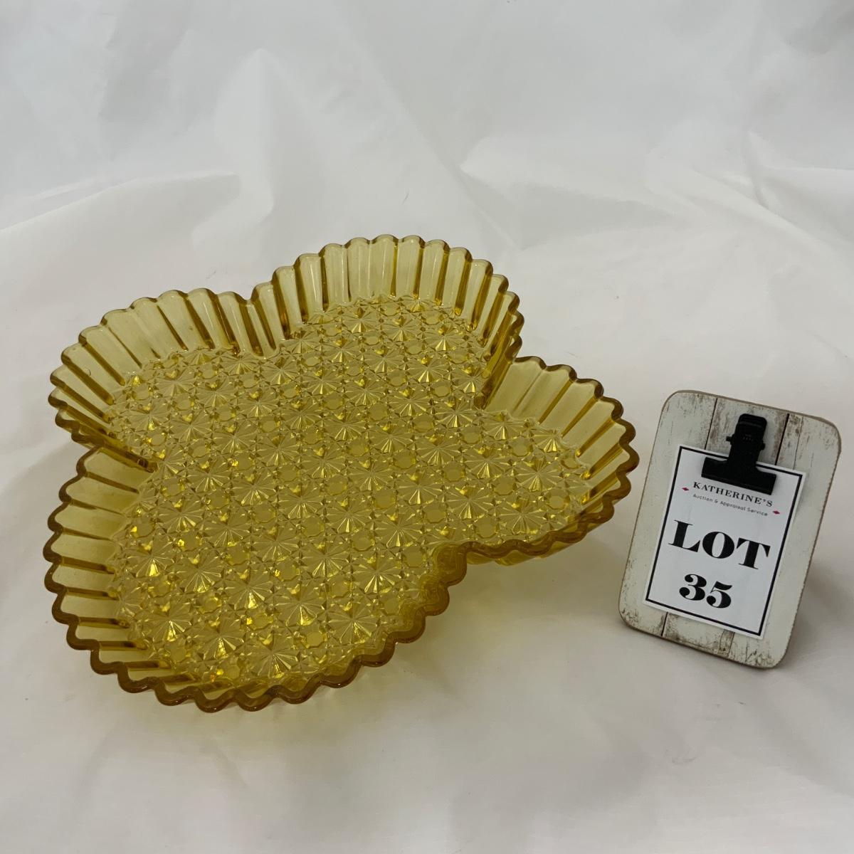 Beautiful Daisy and Button Ice Cream Tray. The pattern is stunning and could be displayed or used for a multitude of things. No Cracks or chips that I can find. There are some bubbles in the glass, which is common in antique pieces. The tray measures 12.5” across in either direction. Please see photos for details and condition. ::: Shipping is available on this lot. If you require shipping you must let us know at the close of the auction. We will coordinate with you after the item has been won. Shipping fees will include insurance up to or exceeding the value of all items being mailed. If you have any questions regarding this lot please contact the auctioneer either via this website, by direct email or by phone. PICK UP TIMES and other important information can be found in the TERMS and DESCRIPTION of the auction. Please take a look for pertinent information. Thanks!