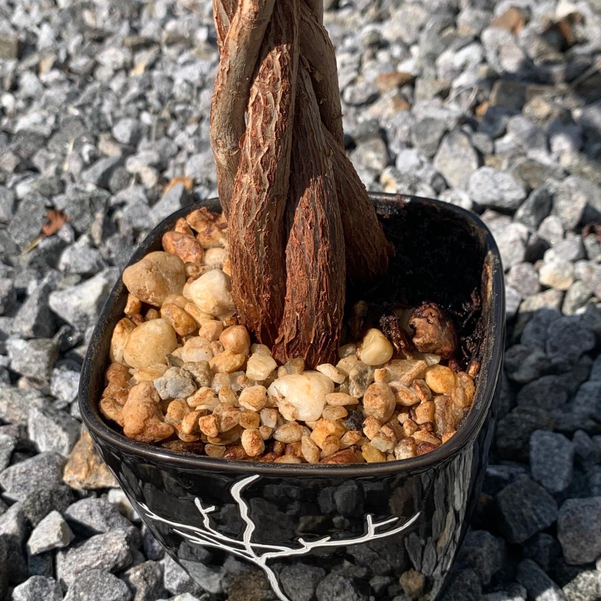 Live healthy money tree that is just over 3.5’ tall. Comes in a black ceramic planter with a white tree design that is filled with stones and soil.