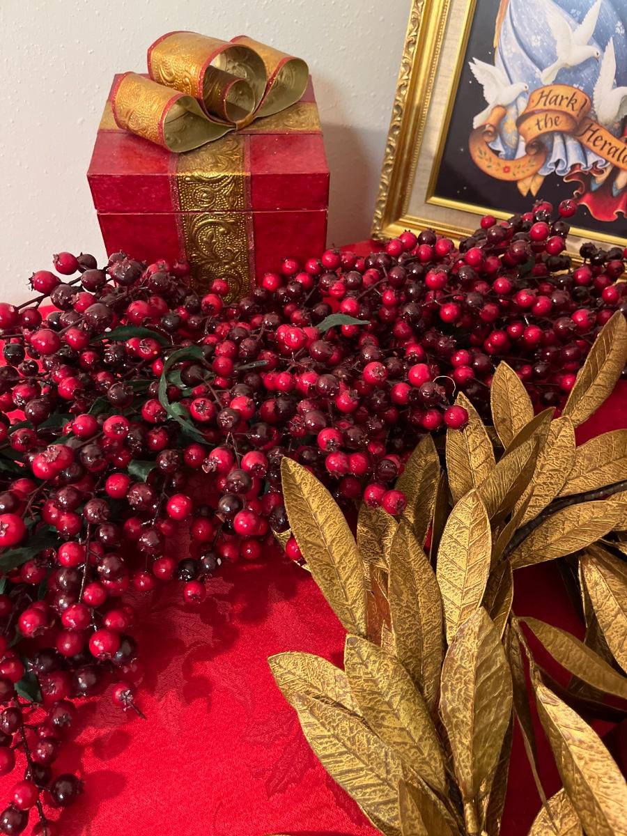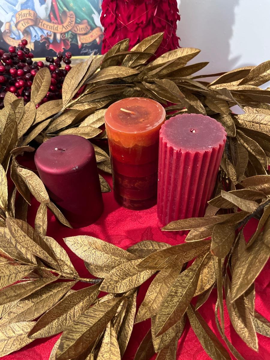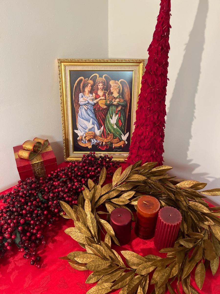 35- Holiday pic, garland, candles, tree