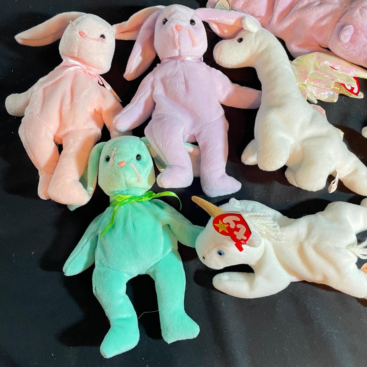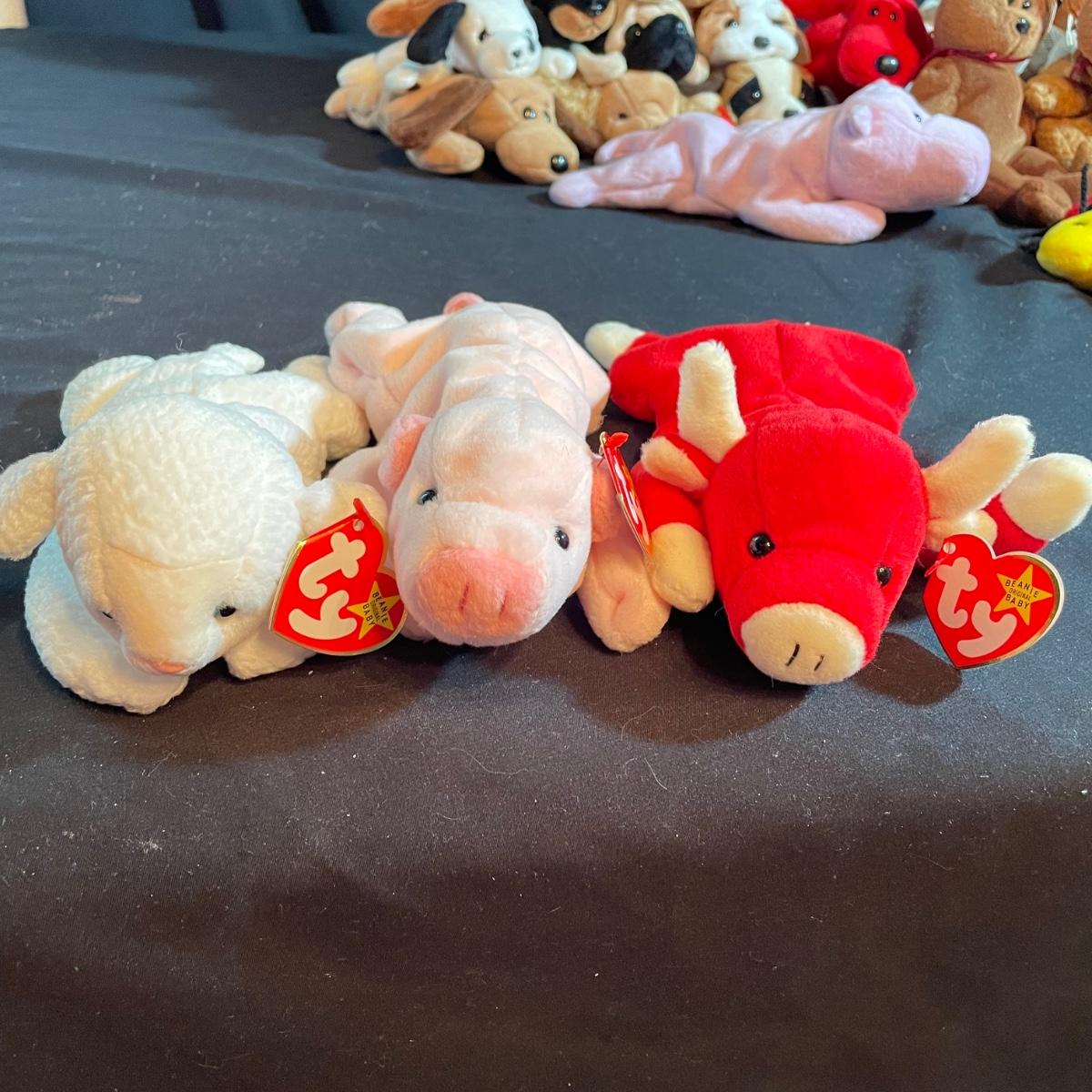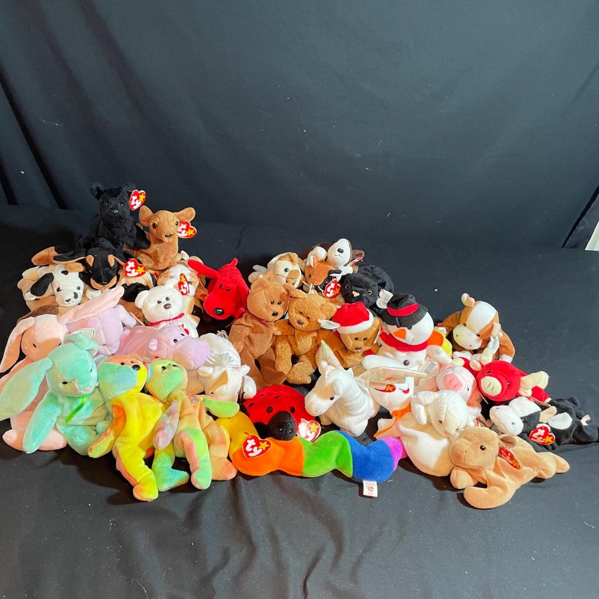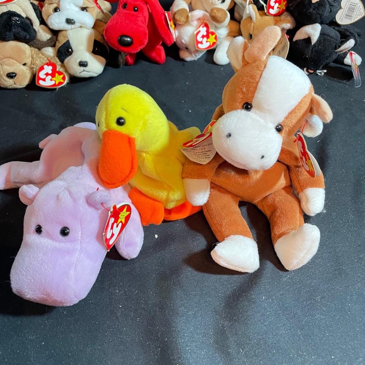 Over thirty five collectible Beanie Babies! Rarer babies like Snort, Fleece, Valentino, Garcia and so many more! Daisy, Wrinkles, Magic and Valentino have blemishes noted in photos. All have tags and most are in great condition. See images. Shipping available.