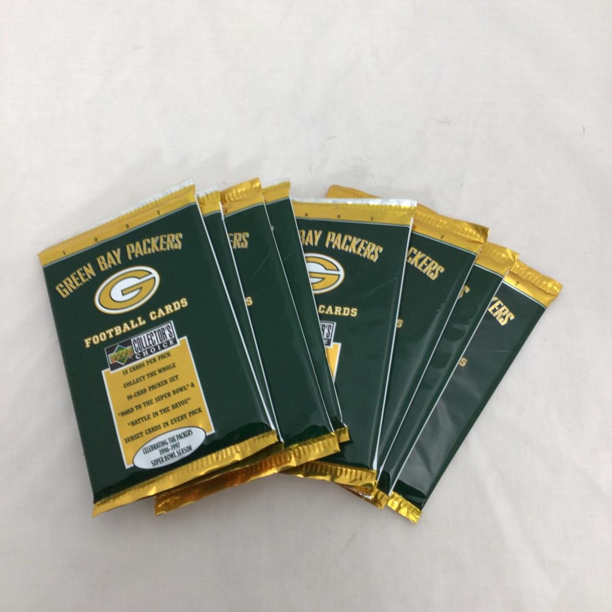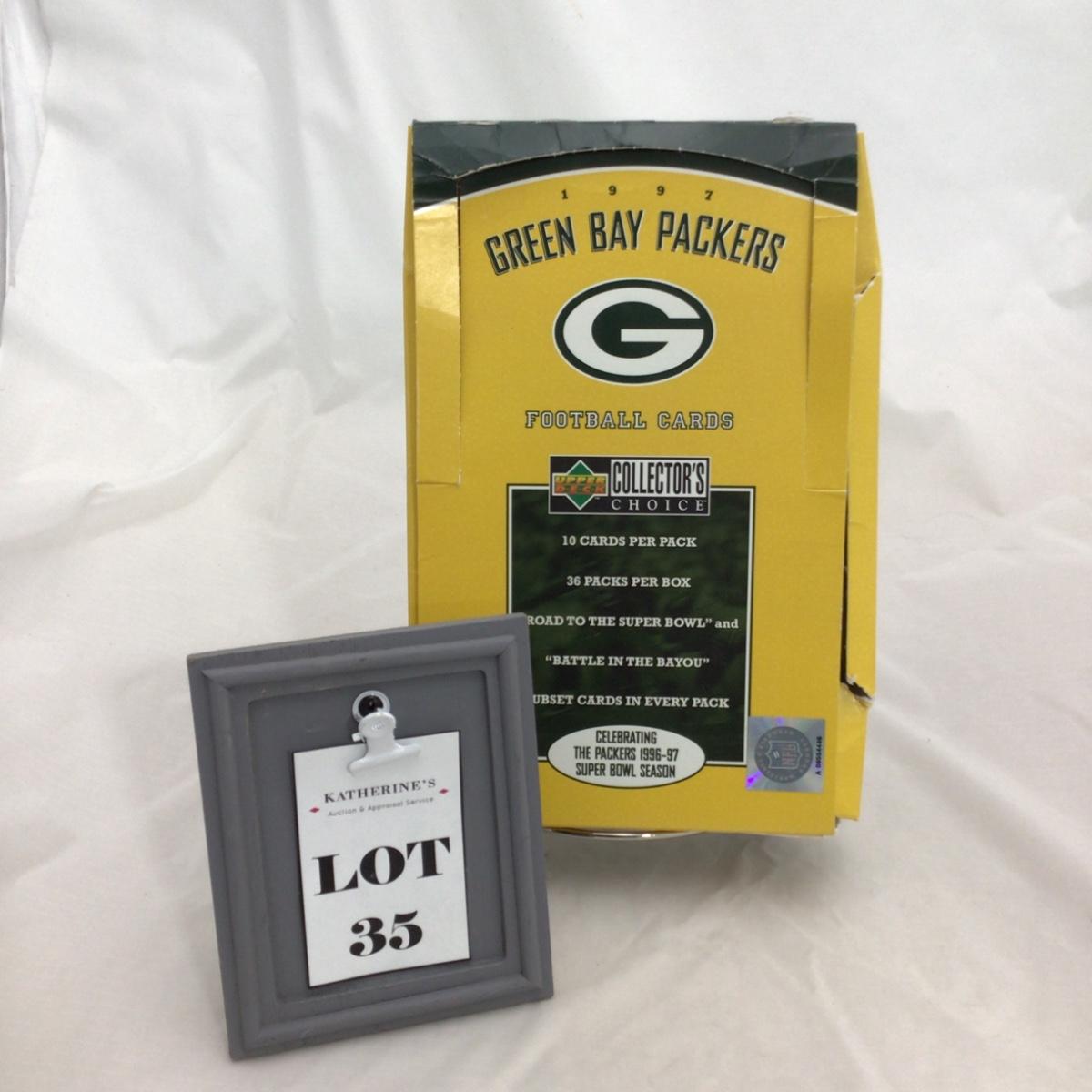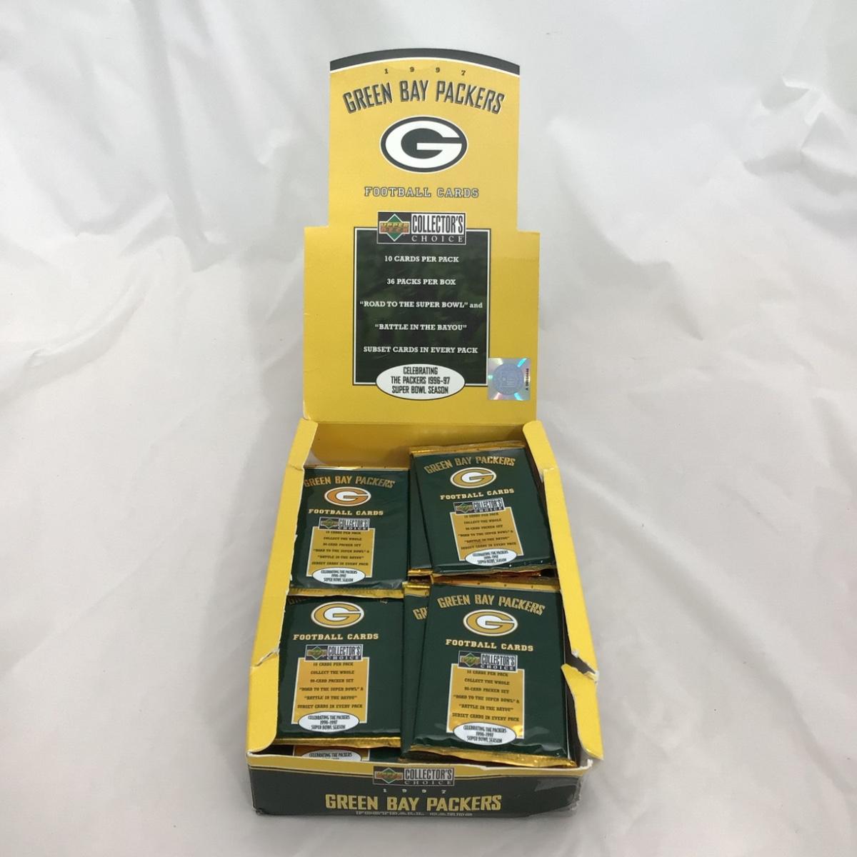 Opened box of packers 1996-1997 Super Bowl Season cards. Full box calls for 36 unopened packs, this box has 32 unopened packs. Packs are in excellent condition, however box itself is in rough condition. Please see photos for details and condition. ::: Shipping is available on this lot. If you require shipping you must let us know at the close of the auction. We will coordinate with you after the item has been won. Shipping fees will include insurance up to or exceeding the value of all items being mailed. If you have any questions regarding this lot please contact the auctioneer either via this website, by direct email or by phone. PICK UP TIMES and other important information can be found in the TERMS and DESCRIPTION of the auction. Please take a look for pertinent information. Thanks!