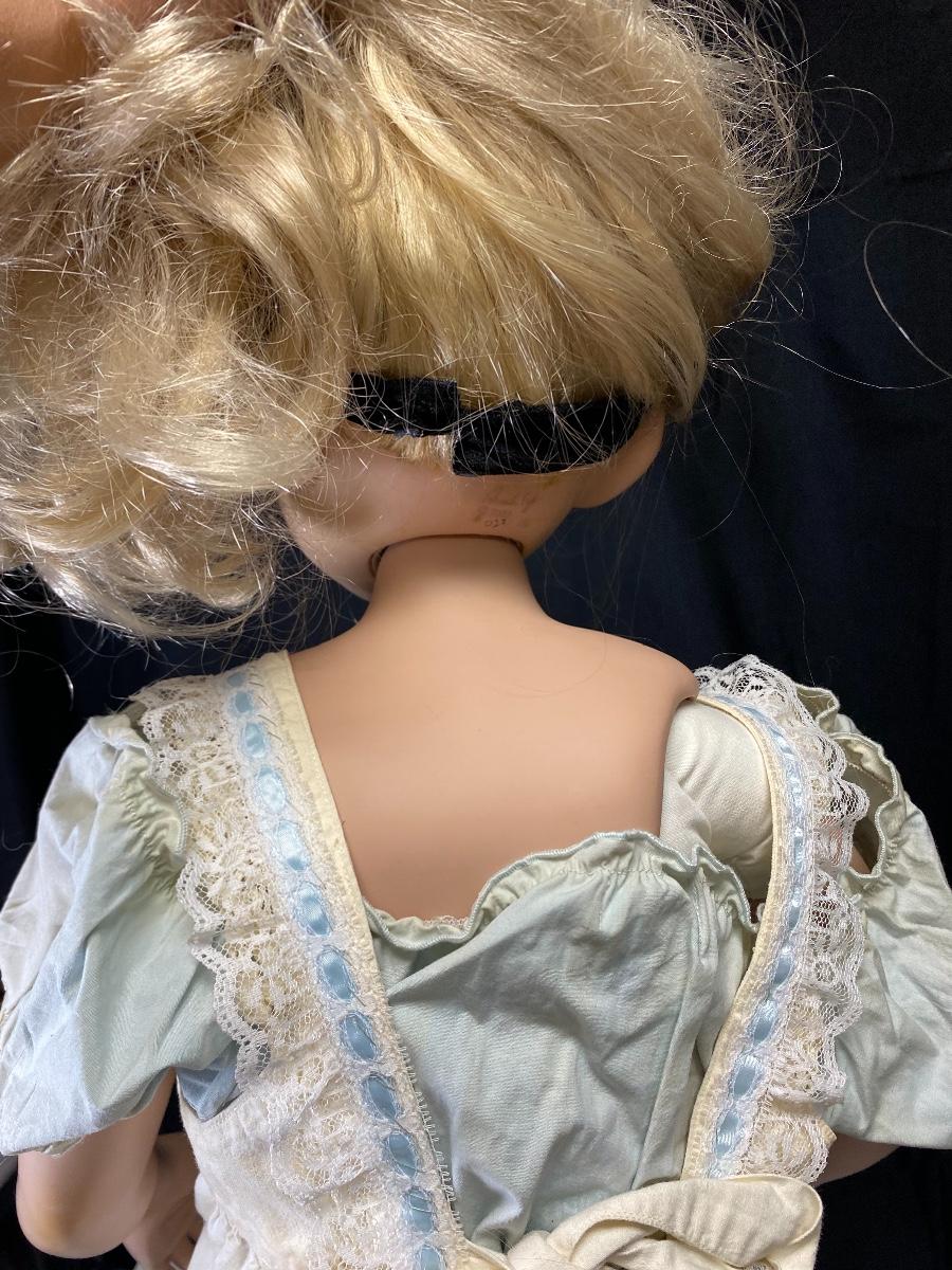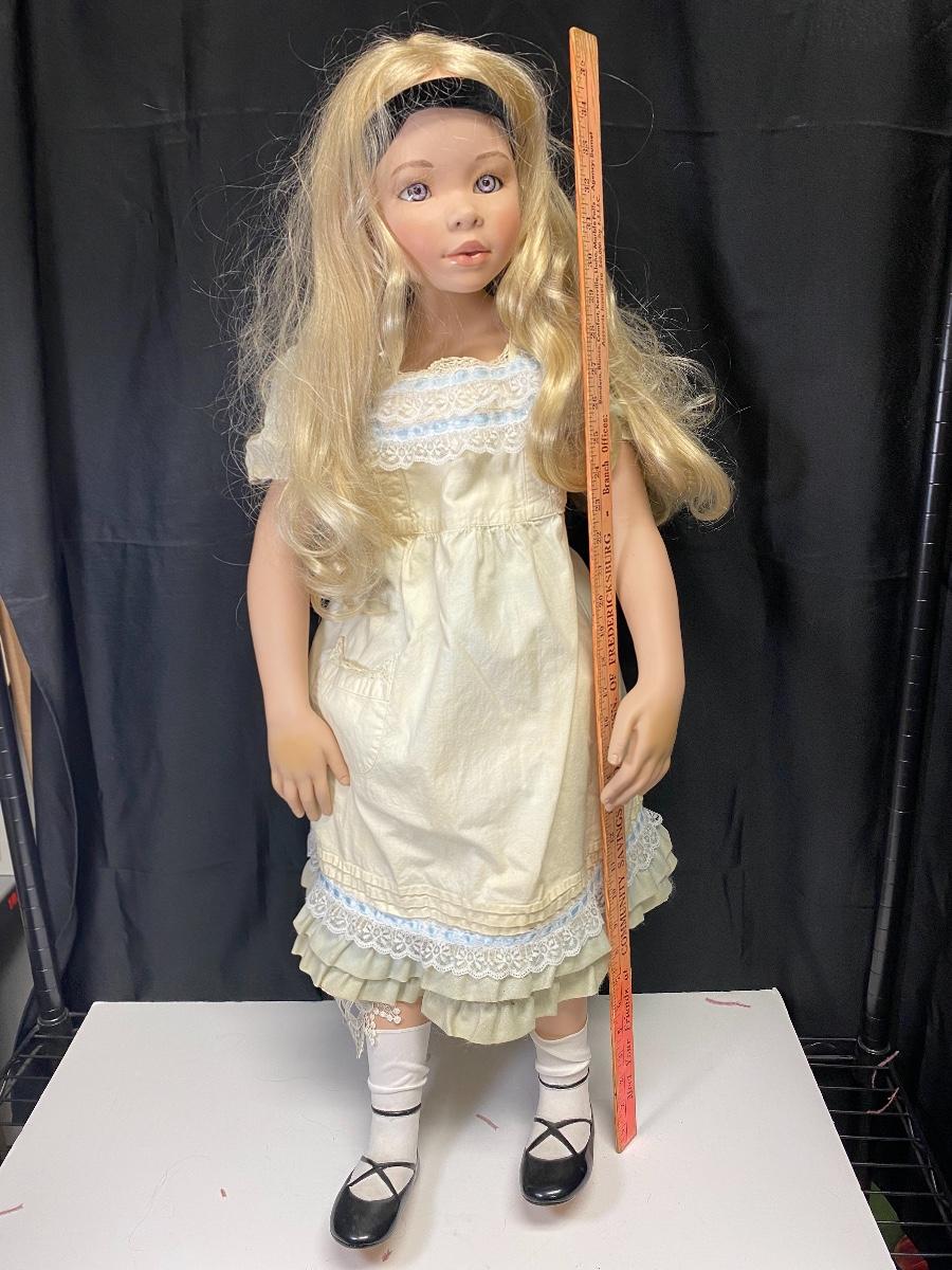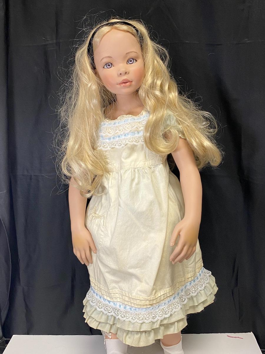 2003 Pamela Erff Masterpiece Doll Alice in Wonderland. Large porcelain and cloth doll stands at 35". Made to stand, does not sit. Not original outfit. Shoes are painted on. Other then her clothes not fitting well and her messy hair she is in good condition. Limited edition #023/750.