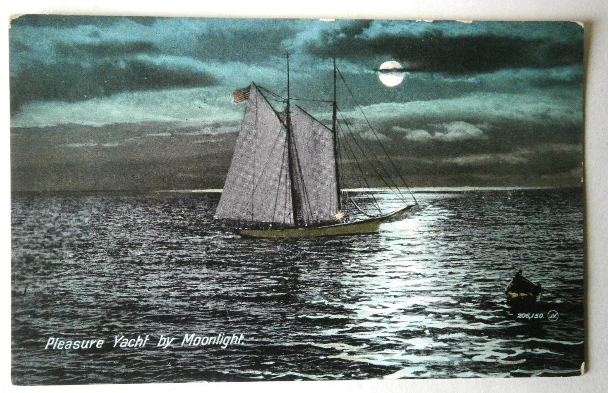 35. Pleasure Yacht by Moonlight early 1900's, Valentine & Sons, unused