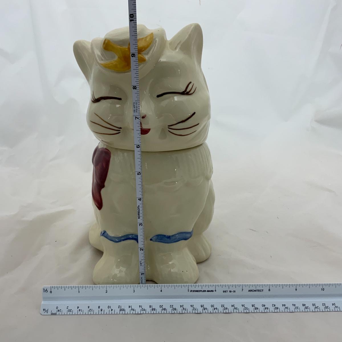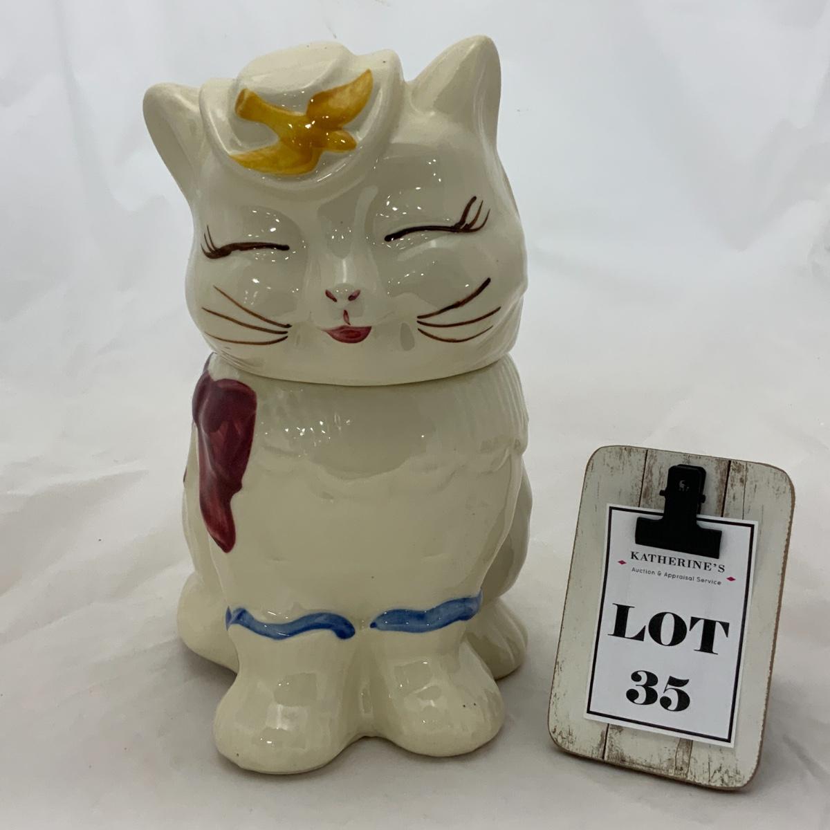 From the Estate of Peter and Alice Radovanovich: Excellent Shawnee Cookie Jar of Puss-In-Boots. A true classic from the 1940s. Cookie Jar is in exceptional vintage condition. Please see photos for details and condition. ::: Shipping is available on this lot. If you require shipping you must let us know at the close of the auction. We will coordinate with you after the item has been won. Shipping fees will include insurance up to or exceeding the value of all items being mailed. If you have any questions regarding this lot please contact the auctioneer either via this website, by direct email or by phone. PICK UP TIMES and other important information can be found in the TERMS and DESCRIPTION of the auction. Please take a look for pertinent information. Thanks!