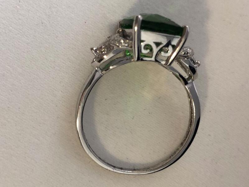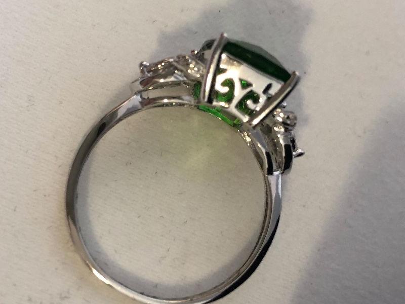 Sterling and Emerald ring, like new. Shipping is $3.95 anywhere in the US $1 for each additional coin set, currency or jewelry piece.