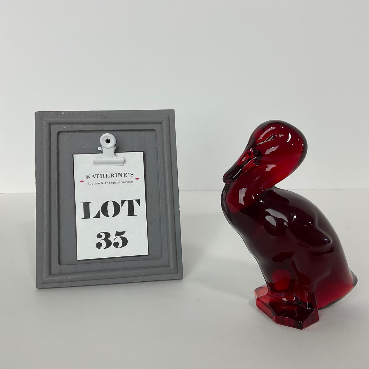 One Viking ruby red Epic fighting duck figure. 3 1/2 inches wide by 4 inches tall. Game Please see photos for details and condition. Any condition statement is given as a courtesy to a client, is an opinion, and should not be treated as a statement of fact. Reference to condition written, oral or within a condition report shall not be regarded as a full account of condition and may not include all defects, alterations, or restorations. Absence of a condition report does not imply a lot is flawless or lacking imperfections or damage. Katherine’s Auction & Appraisal Service shall have no responsibility for any error or omission. Returns shall not be accepted on the basis of condition. ::: Shipping is available on this lot. If you require shipping you must let us know at the close of the auction. We will coordinate with you after the item has been won. Shipping fees will include insurance up to or exceeding the value of all items being mailed. If you have any questions regarding this lot please contact the auctioneer either via this website, by direct email or by phone. PICK UP TIMES and other important information can be found in the TERMS and DESCRIPTION of the auction. Please take a look for pertinent information. Thanks!