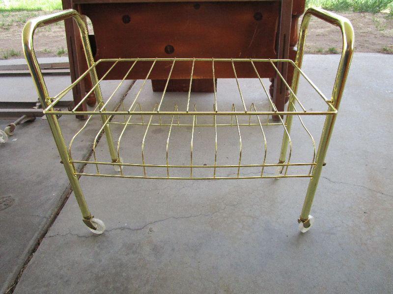 #35 Vintage Gold metal cart with wheels