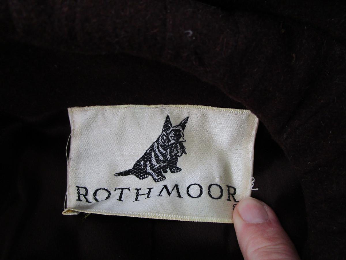 Authentic Rothmoor coat 46" under the arms around; 43" from shoulder to bottom of coat; looks like wool coat with fur collar