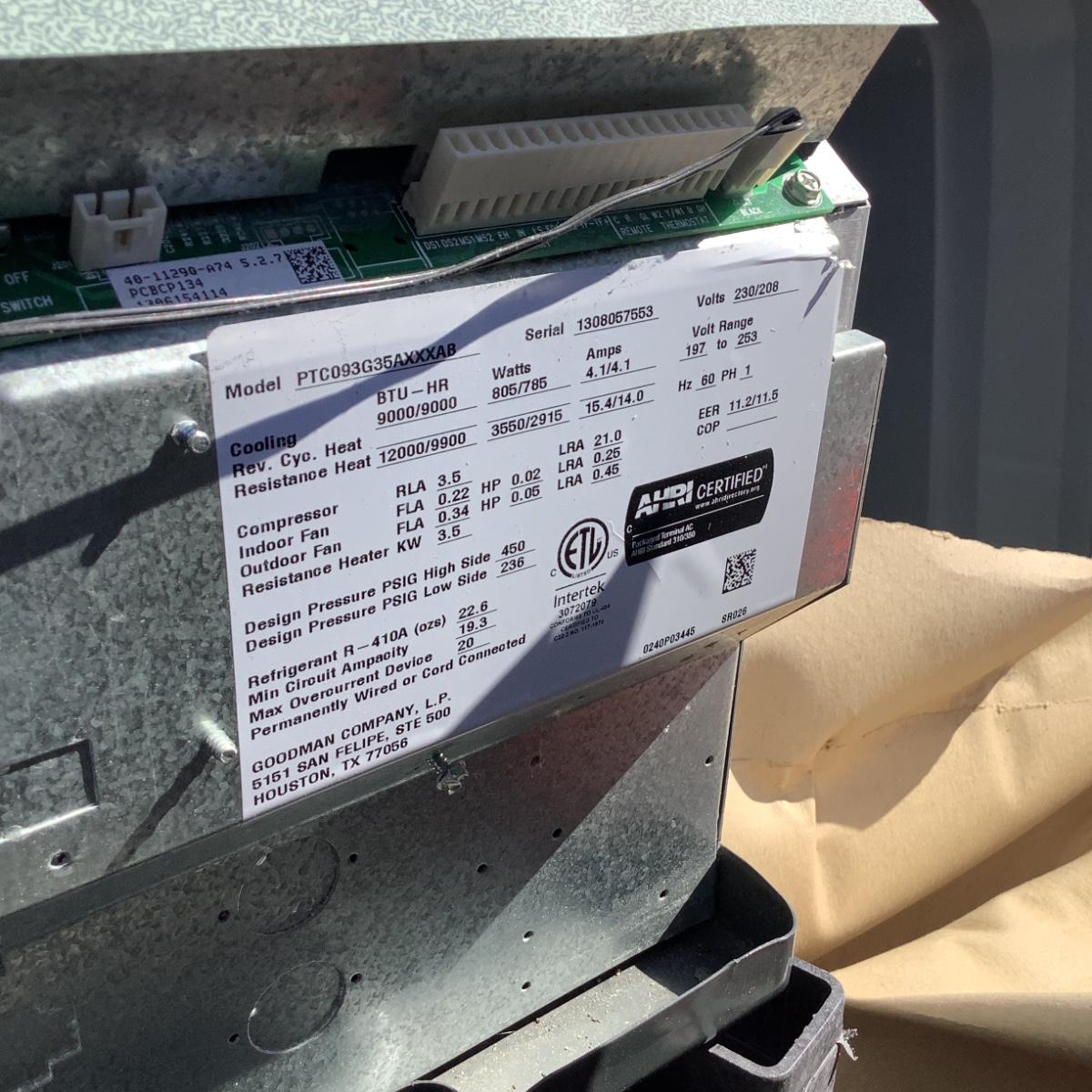 Amana PTAC Heating and Cooling Unit