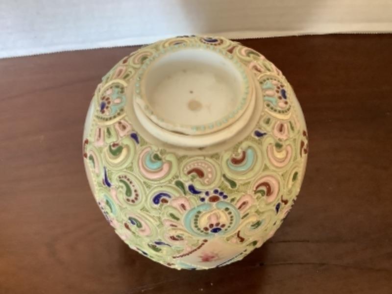 Vintage Moriage jar with lid measures 5-1/2” tall