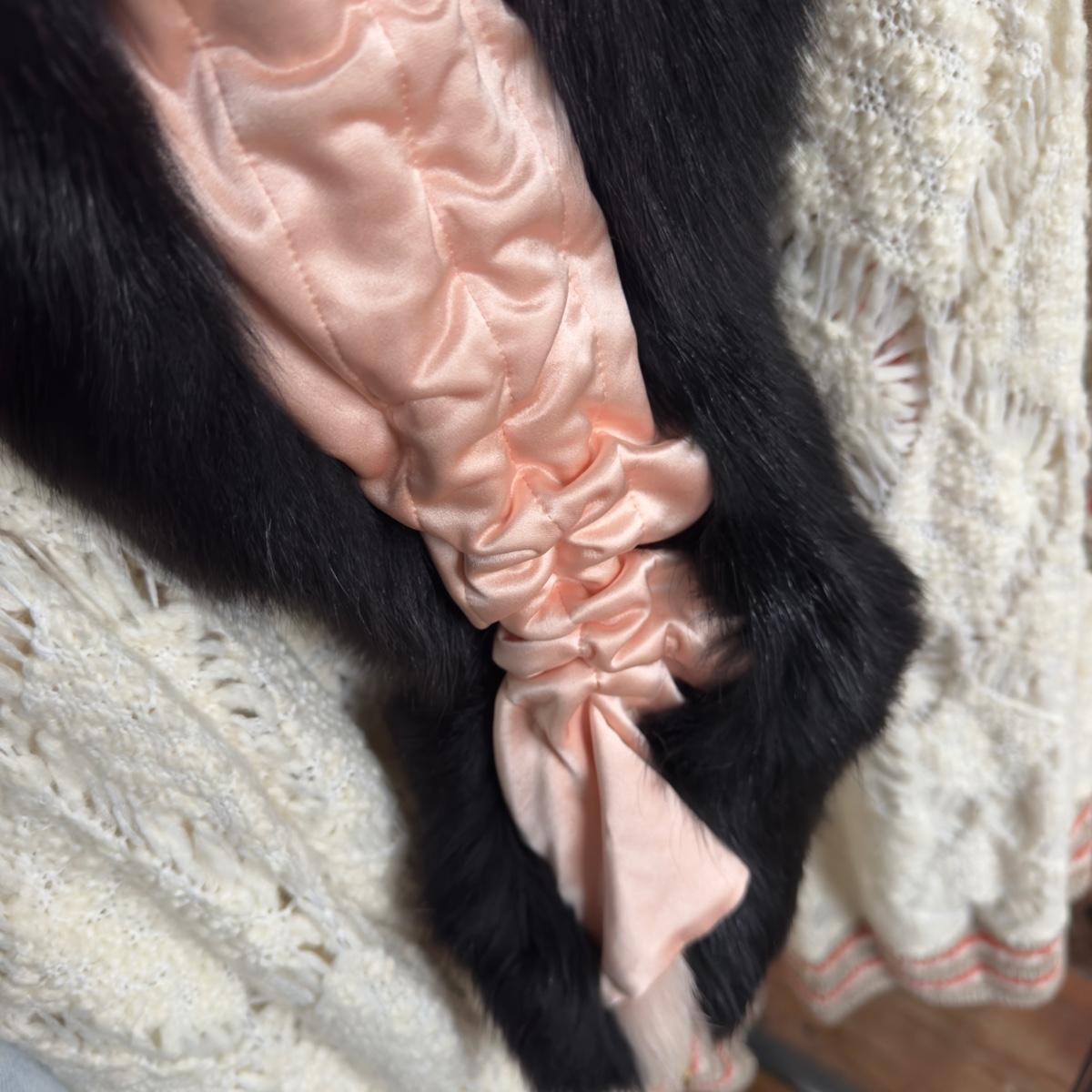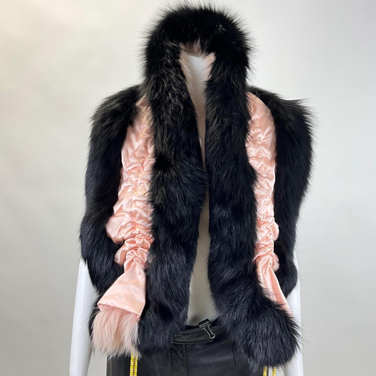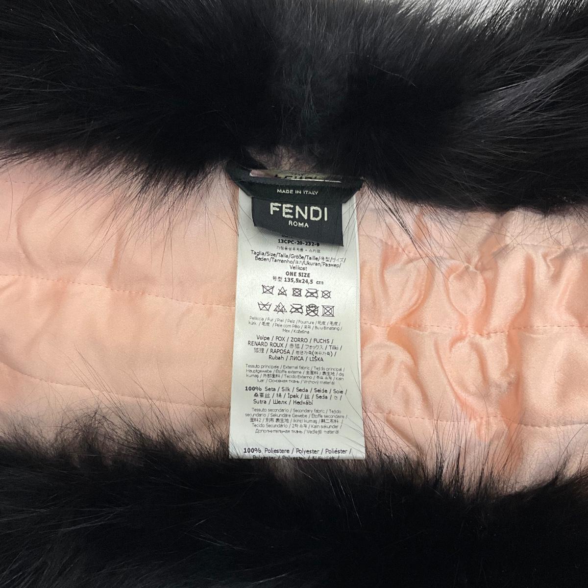 Elegant and luxurious, this FENDI black and pink stole wrap is a striking accessory crafted from 100% silk and adorned with fox fur. Featuring a soft and sophisticated design, this piece exudes timeless glamour. The contrasting black and pink fur, combined with yellow cord details, makes this wrap a unique and versatile addition to any wardrobe.