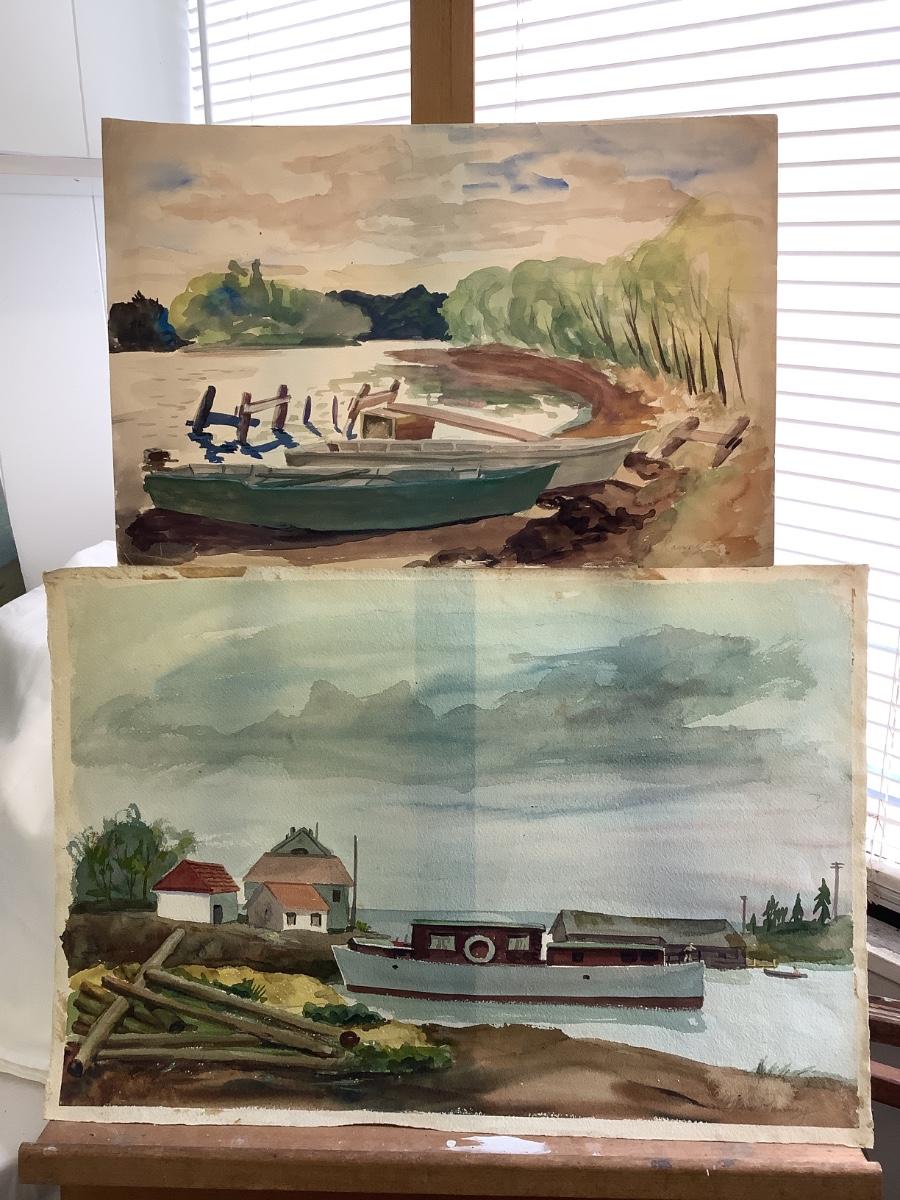 A - 351 Two Original Watercolors of Boats by Glen Ranney