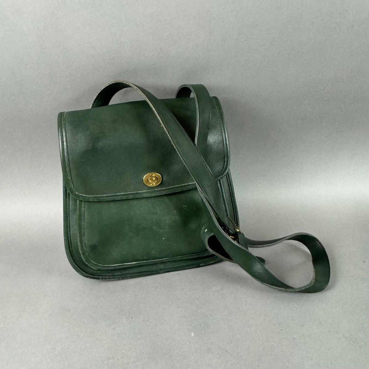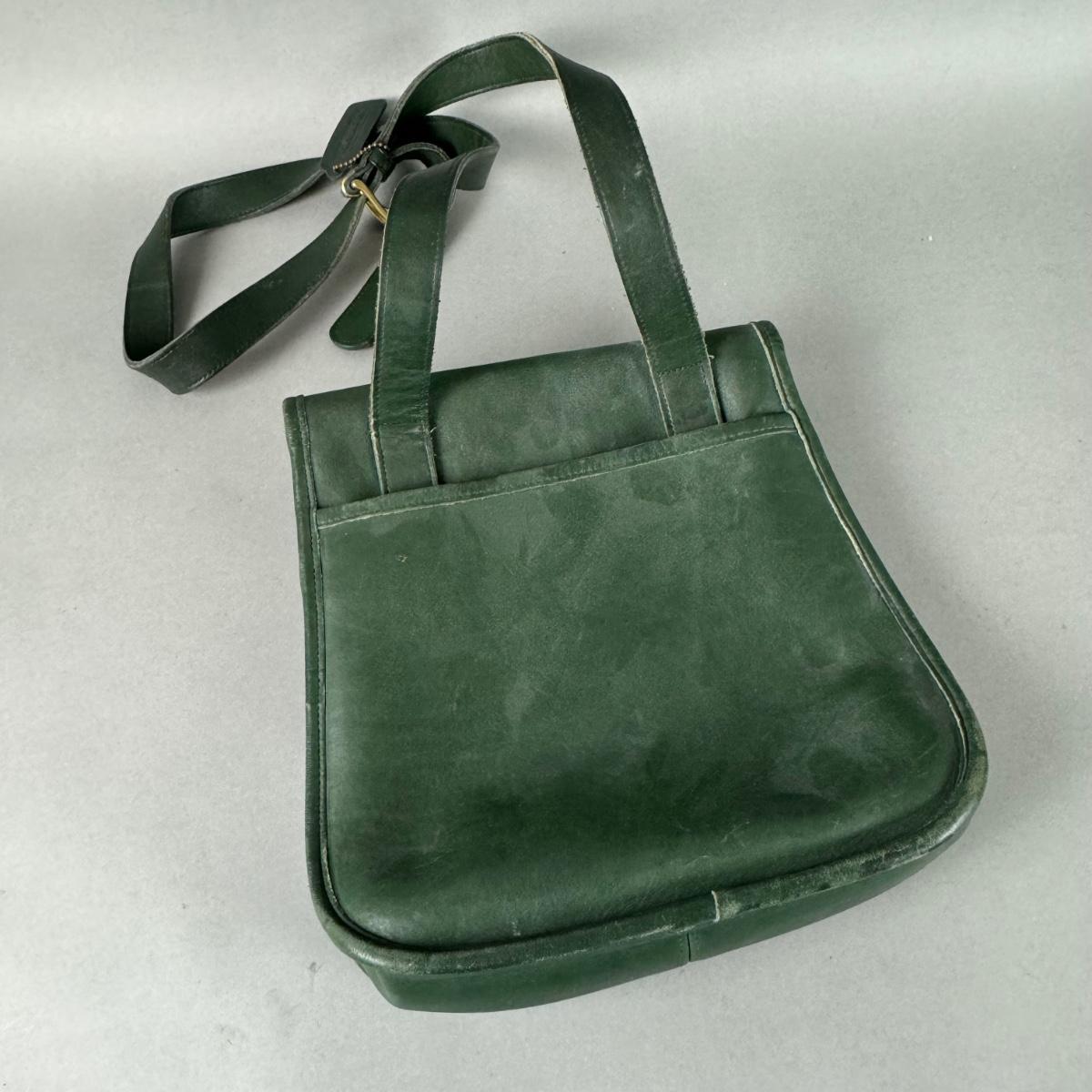 BB351 Vintage Coach Green Leather Crossbody Purse