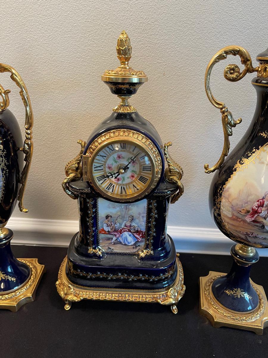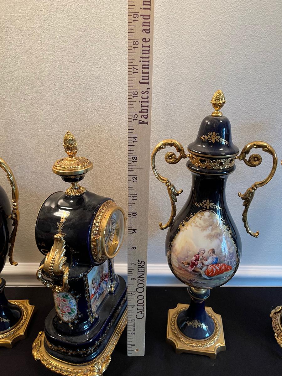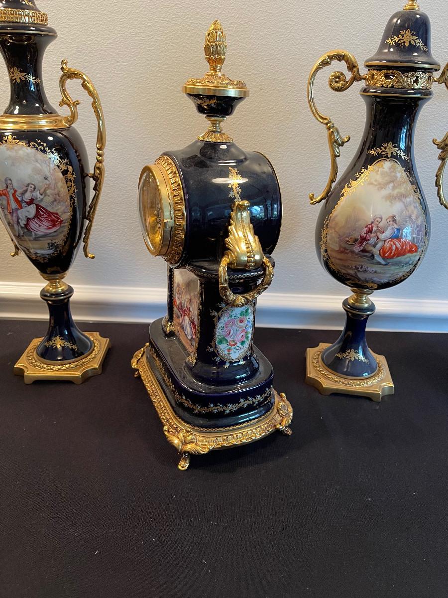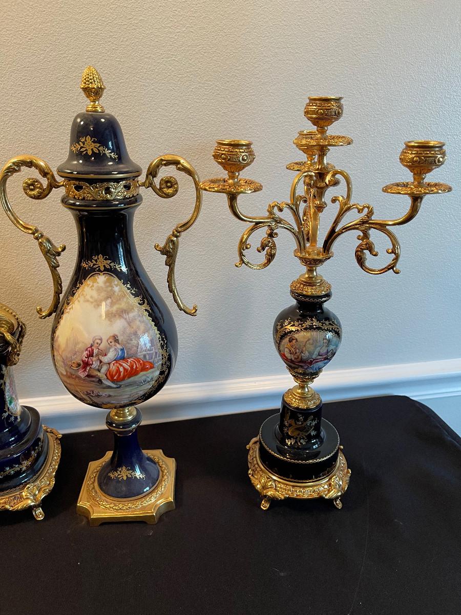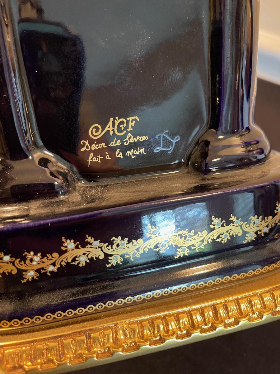 Marked ACF Décor de Sevres Fait A La Main Navy Blue Porcelain and Brass.