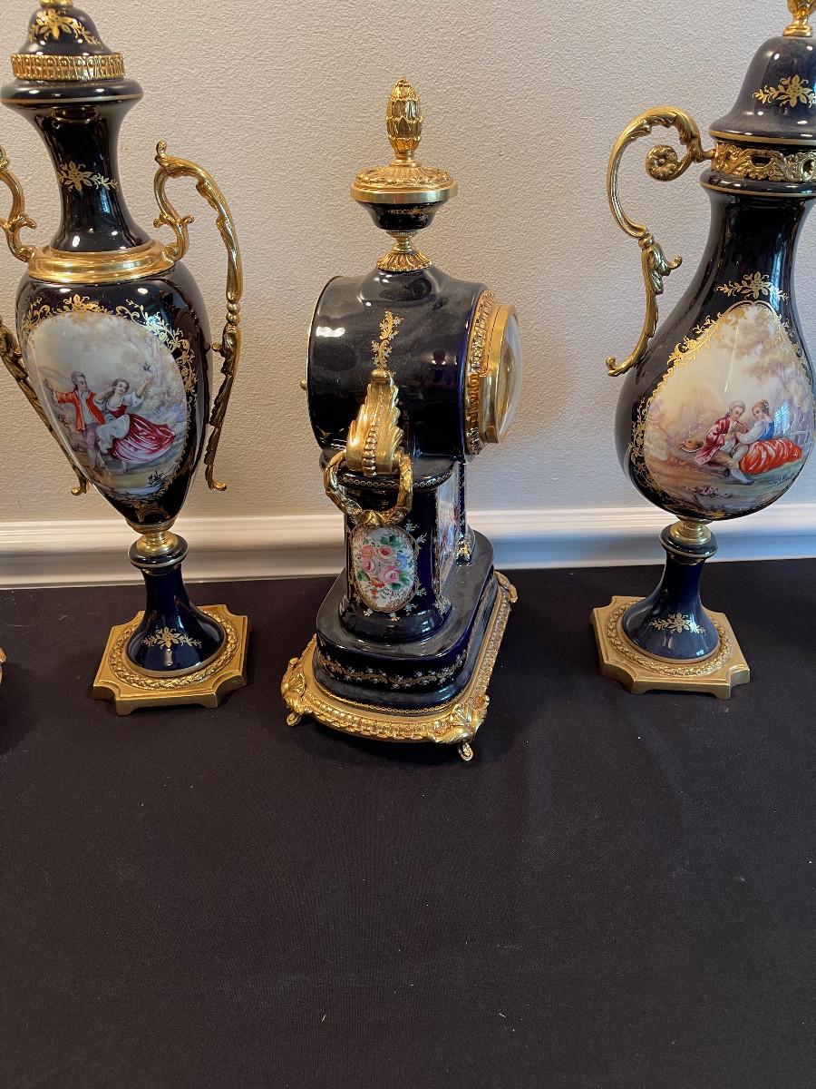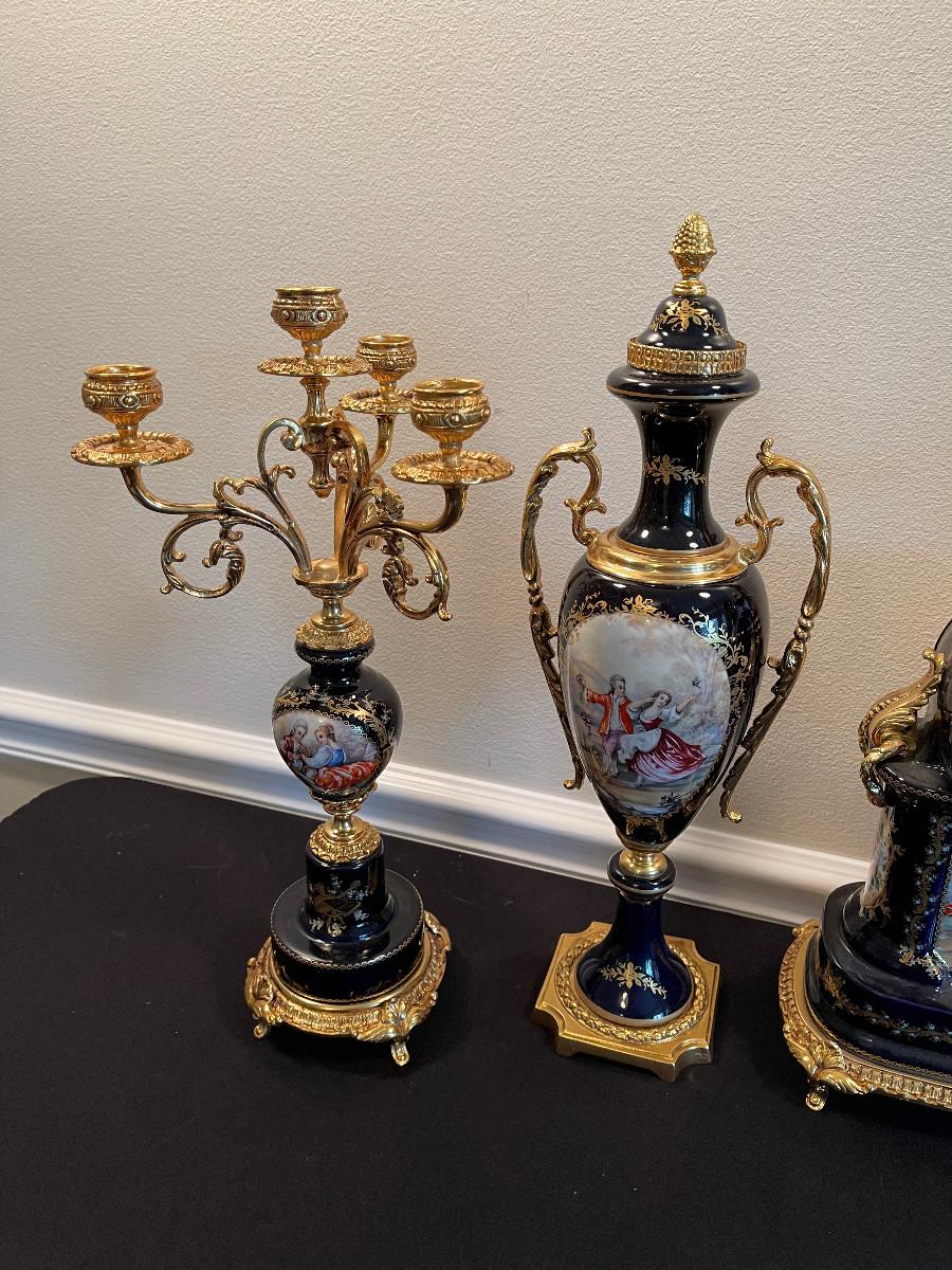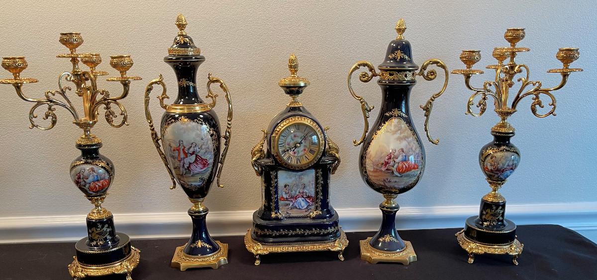 #352 (5) Piece French Mantel Clock set with Candelabras and Plus