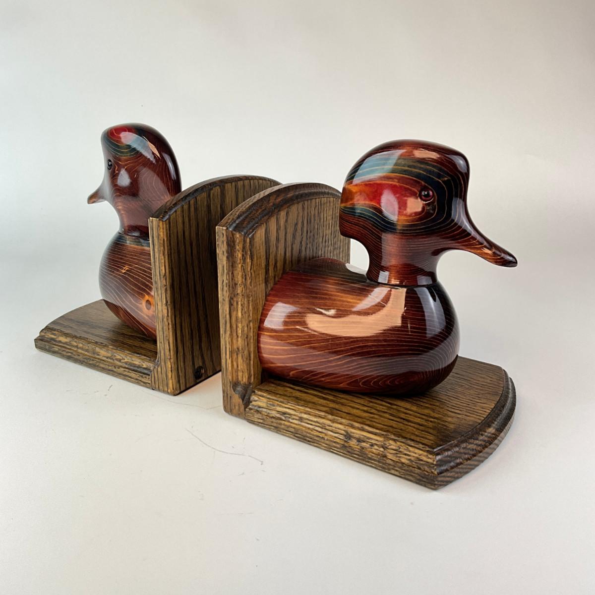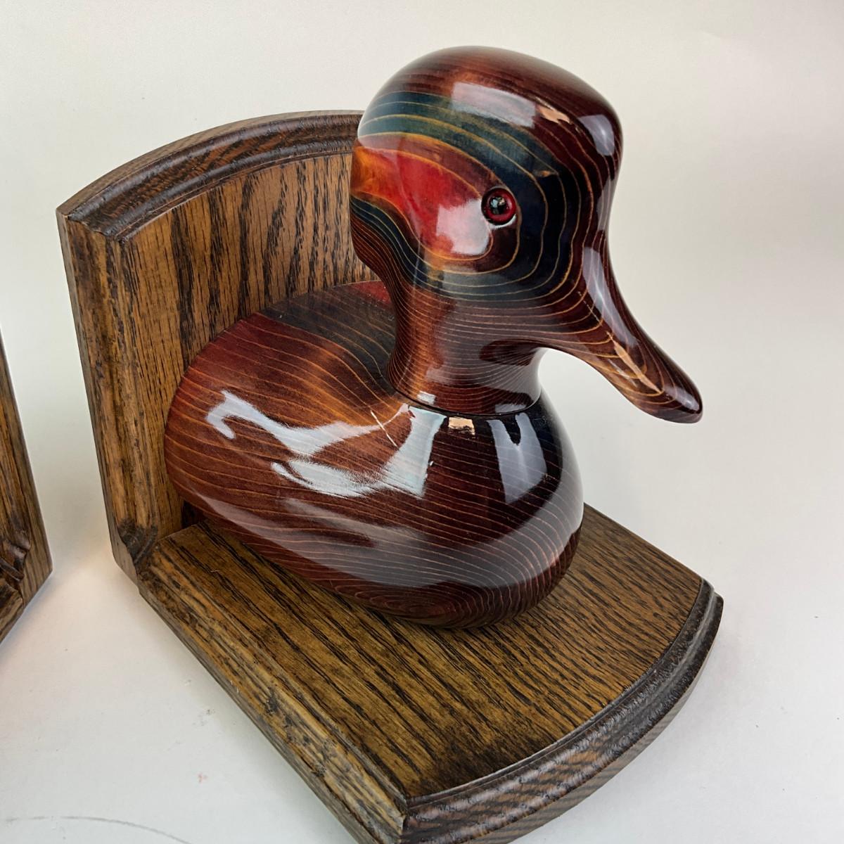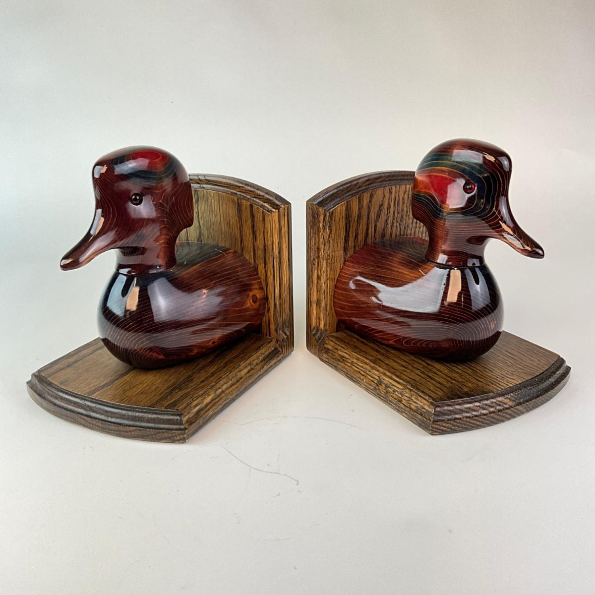 352 Vintage Wooden Duck Decoy Bookends By Bundy & Company