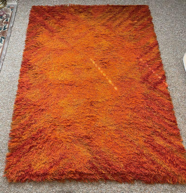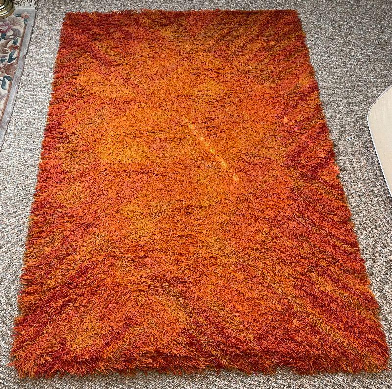 #352b RYA ORANGE SHAG RUG Wool Mid-Century