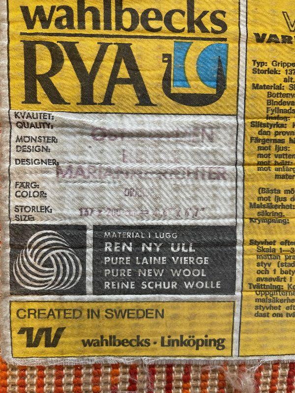 Scandinavian design by Marianne Richter c.1970. 54 x 74" Relatively Clean. Needs a Vacuuming