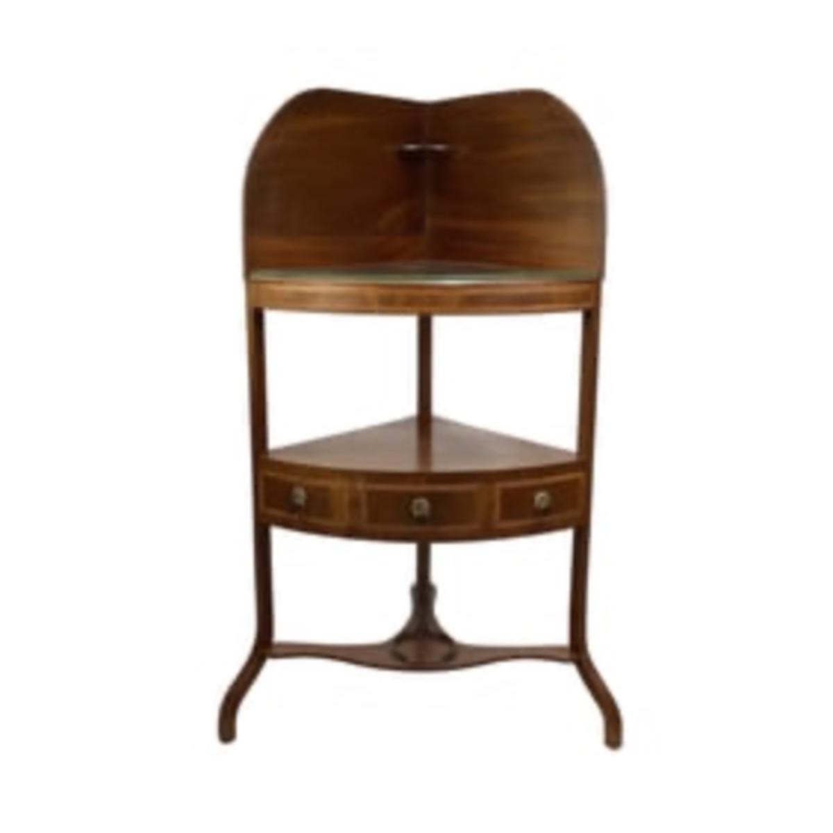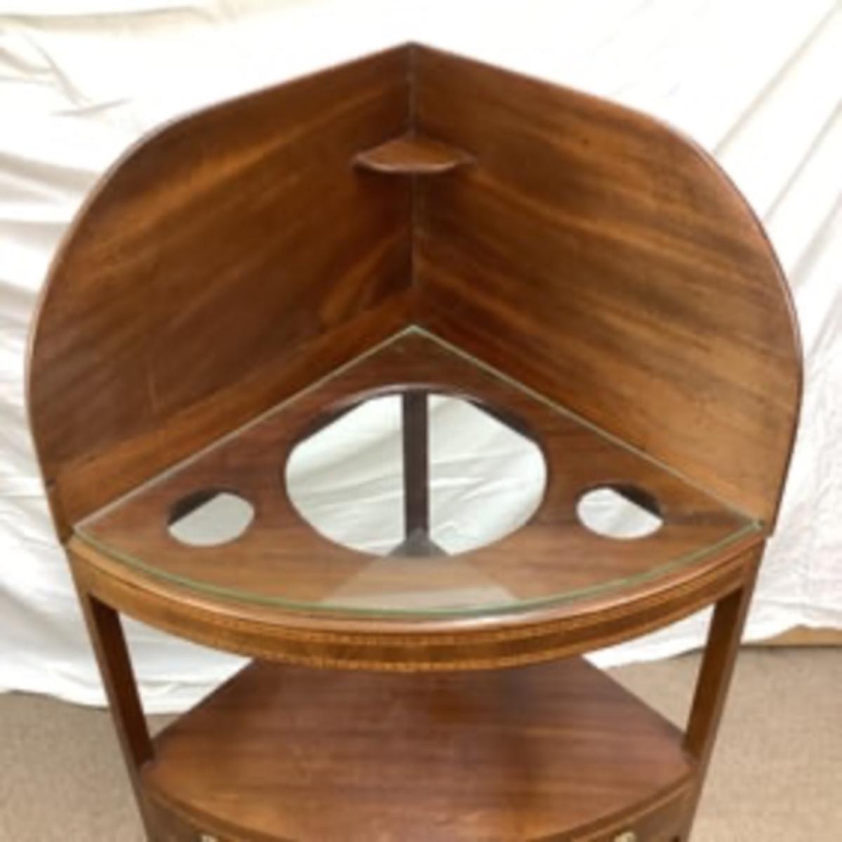 354 Antique English Mahogany Corner Washstand