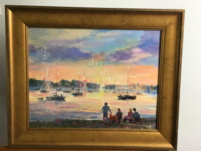 354 Framed Original Oil Painting" Fireworks on the Water" by Jean Ranney Smith “˜09
