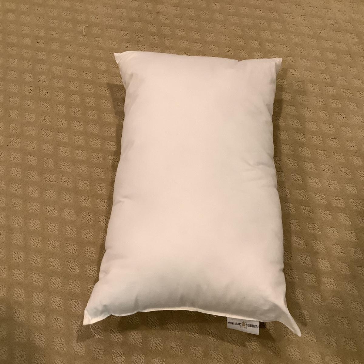 Measuring 15" square with one white william sonoma poly insert measuring 20" x 12"