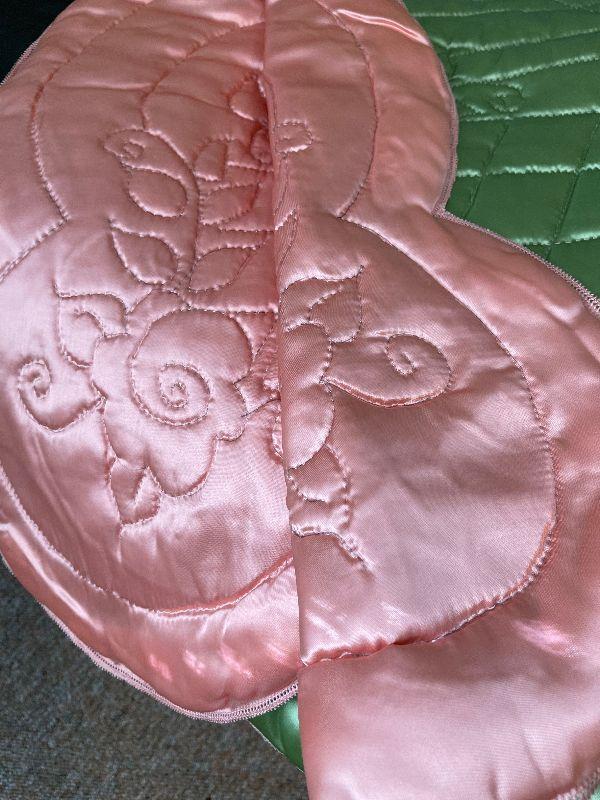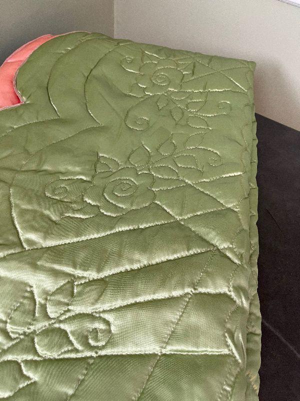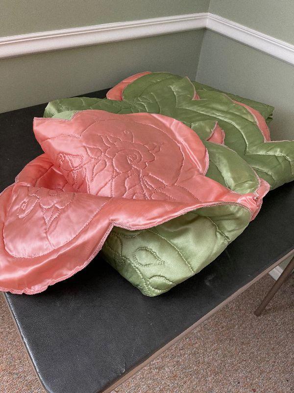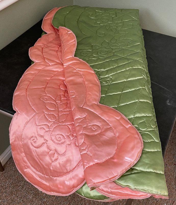 #356B SATIN Bedspread Hand Quilted Pink and Green