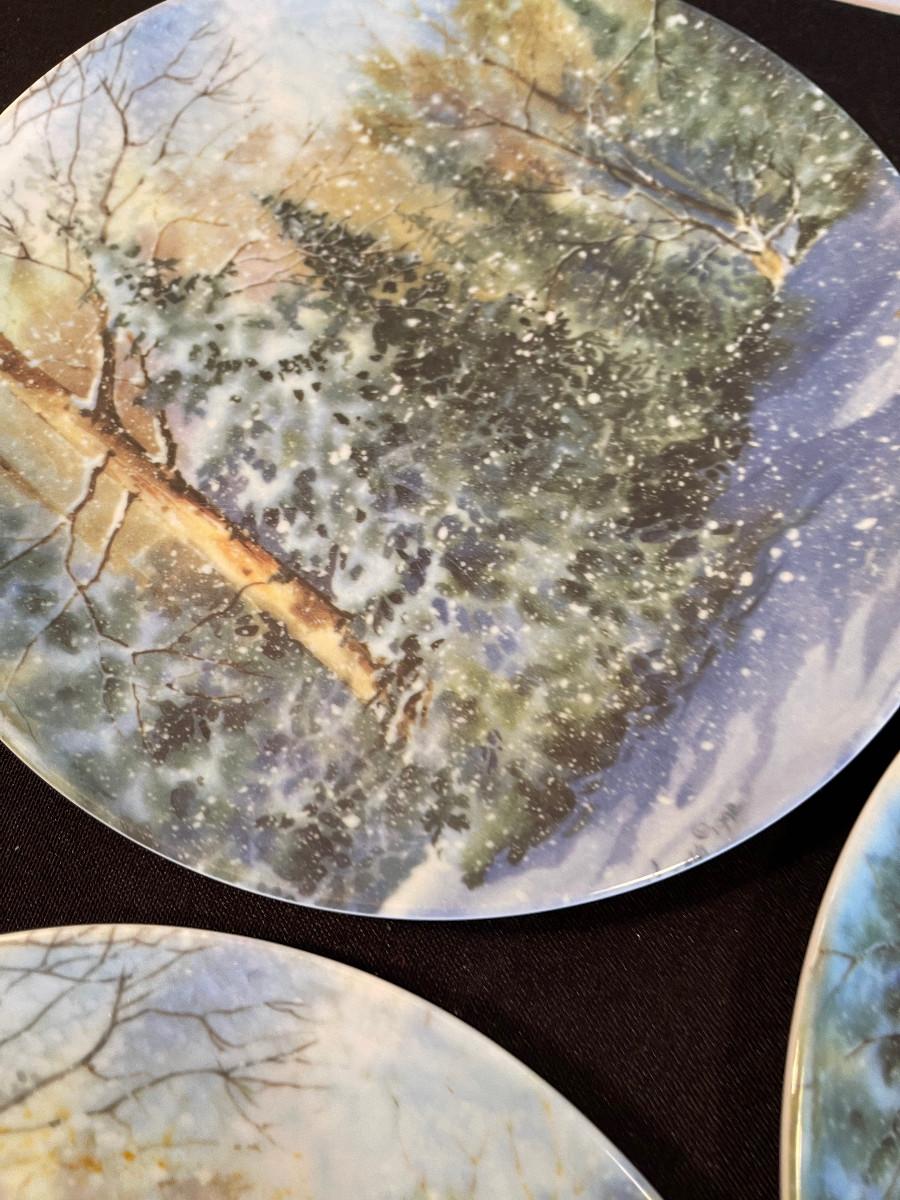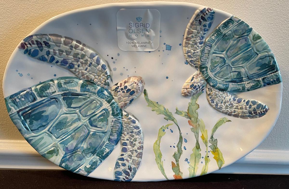 #357 Melamine Turtle Platter Plus 3 Plates with trees