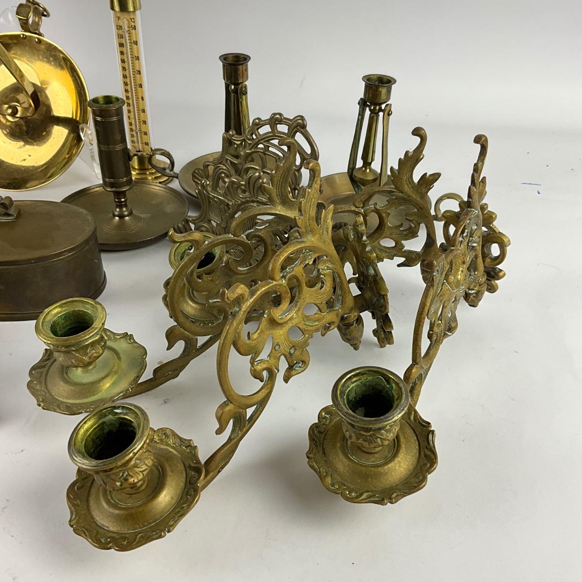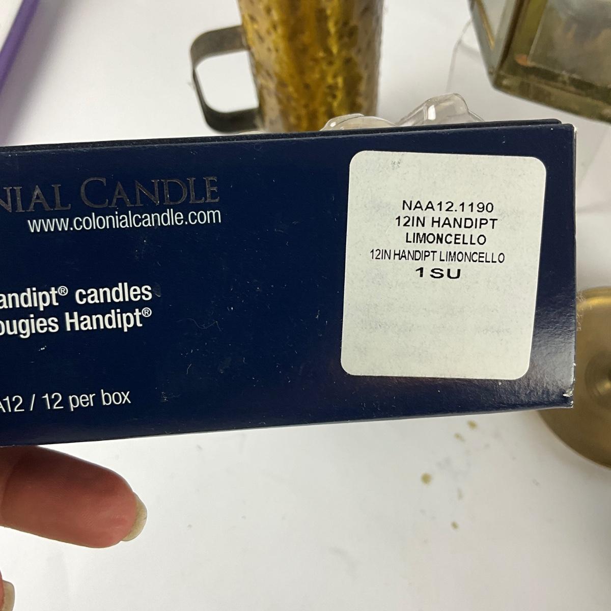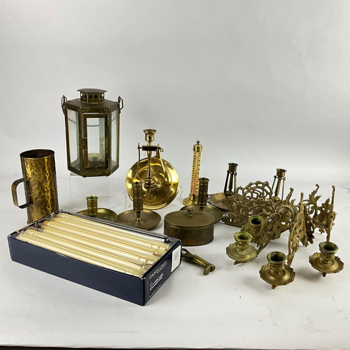 358 Large Lot of Brass Candlesticks, Lantern , Colonial Candles