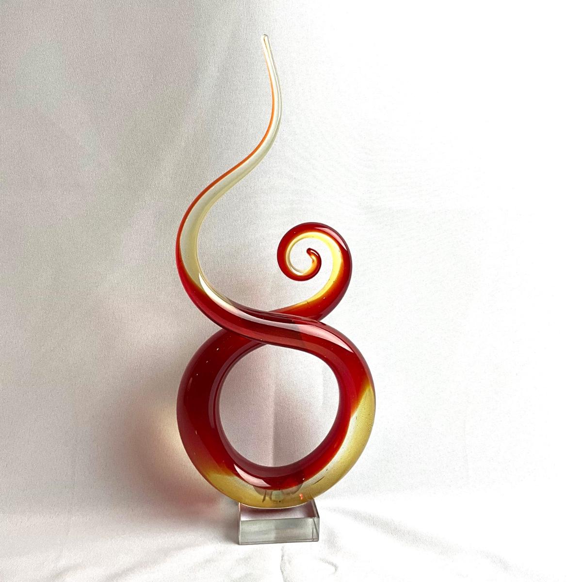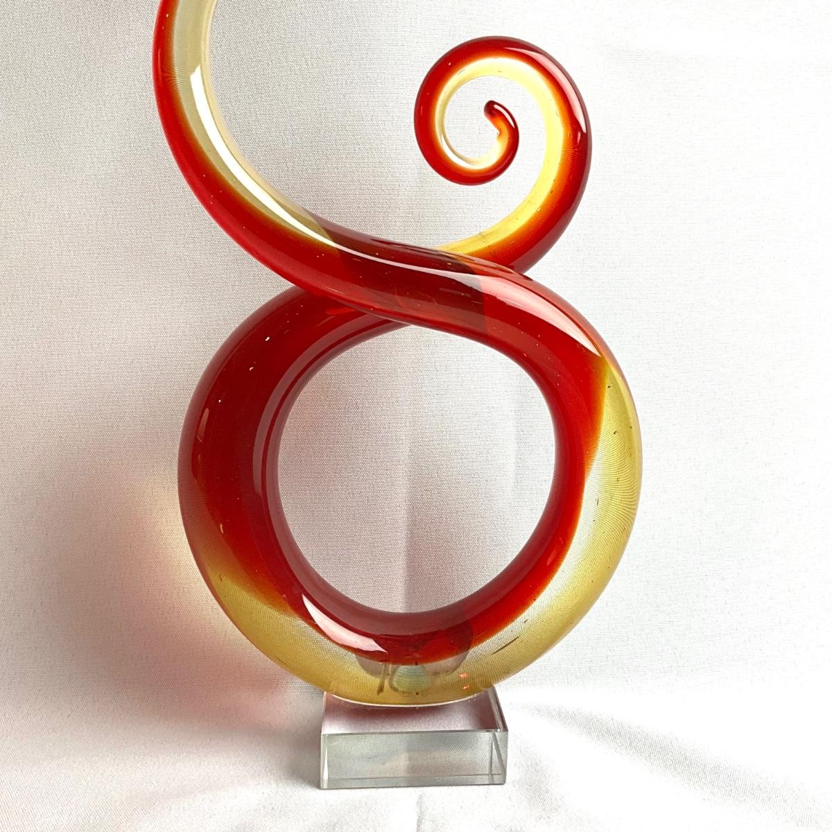 358 Vintage Red Fire Swirl Glass Art Sculpture