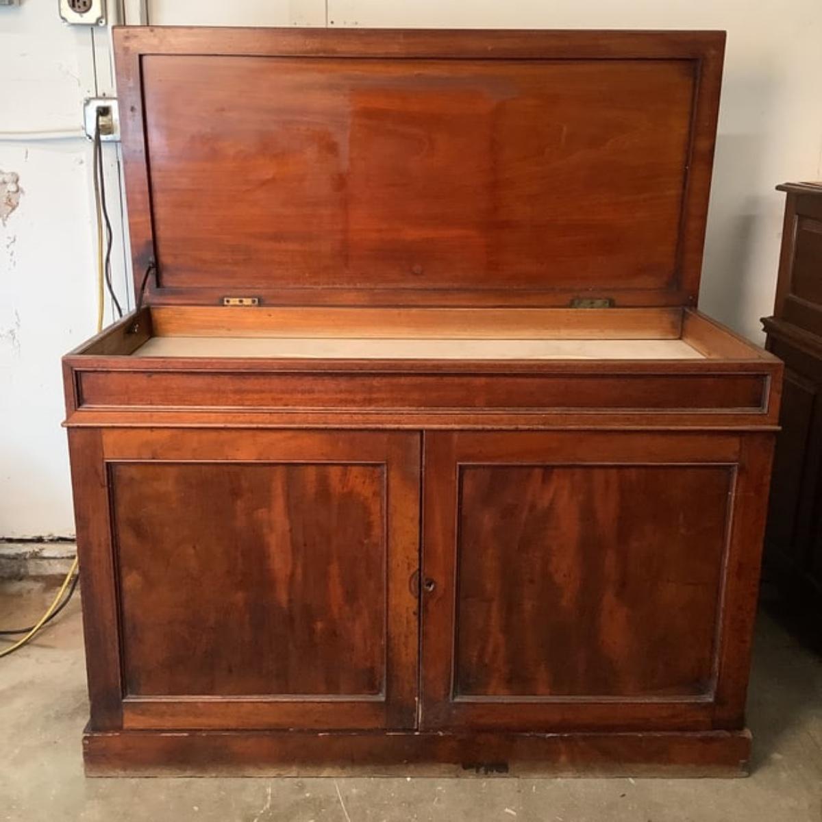 Wells, John, 210 Regent St, London, (1839).maker stamp on inside top , area where a mirror was attached. marble with two basins is in good condition , two doors with inside shelves. measuring 34" high x 51.5" wide x 24" deep