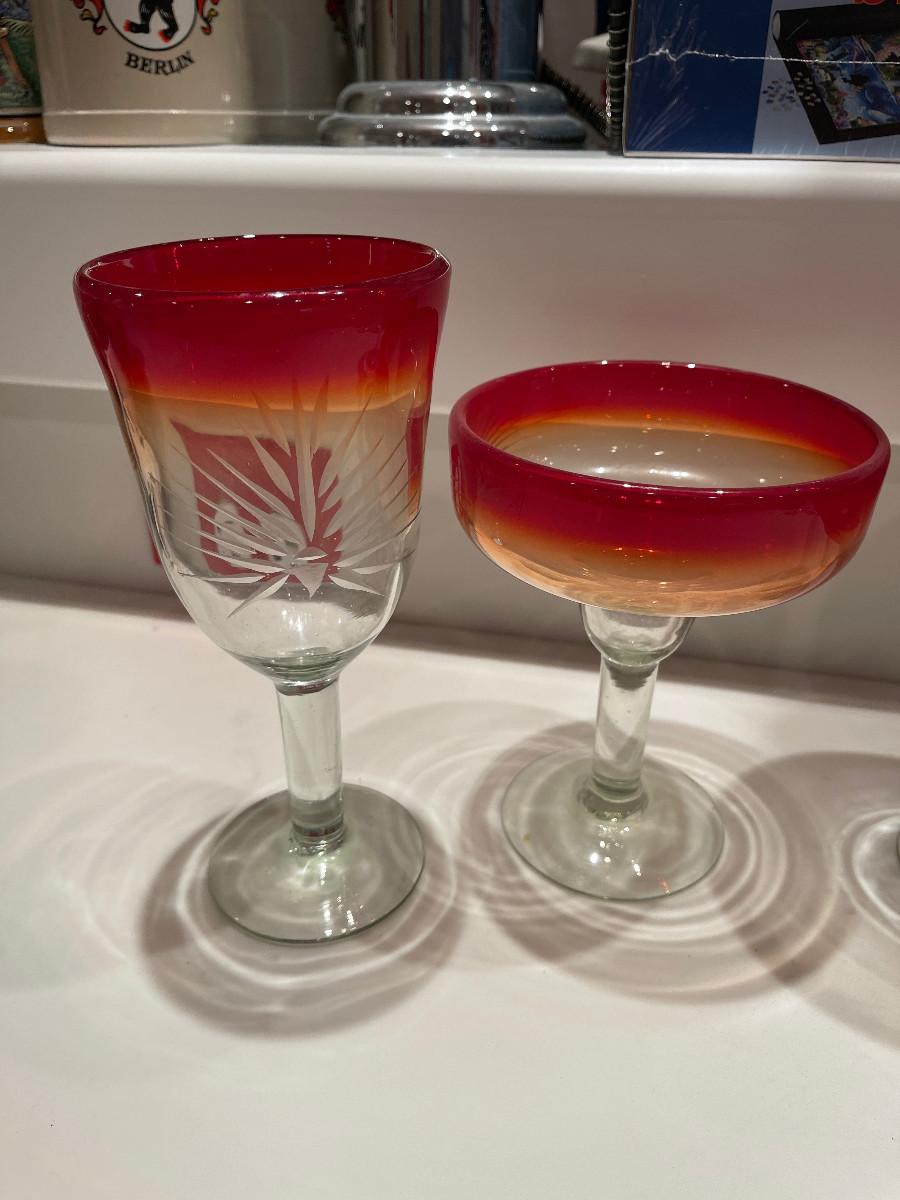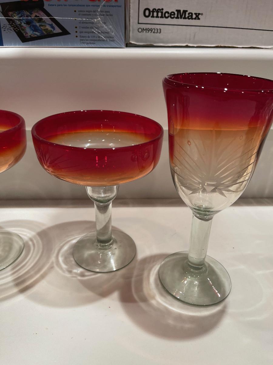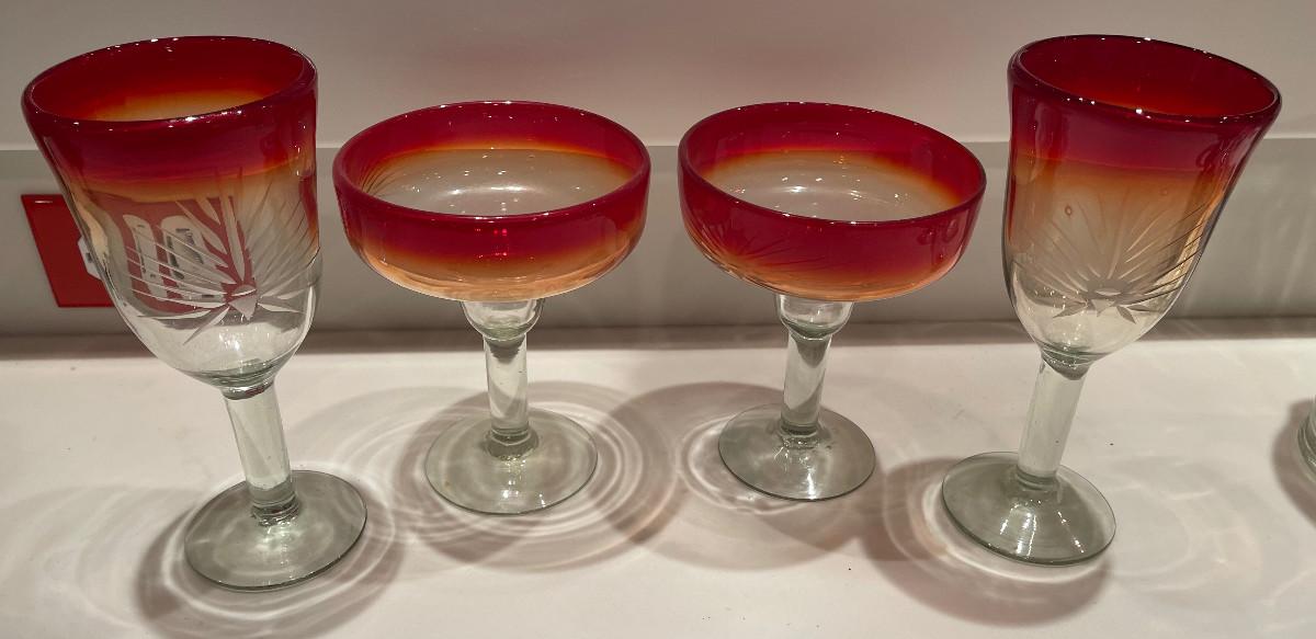 #359 Hand Made Etched Bar ware (4) Pieces Red/yellow