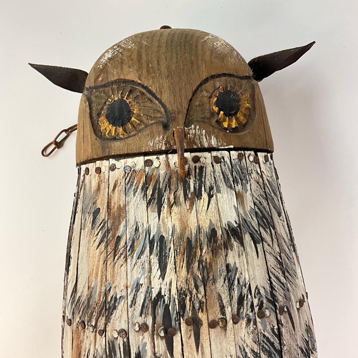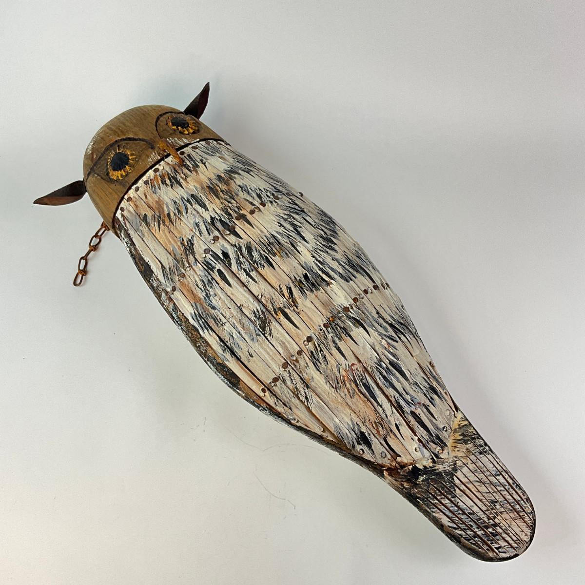 359 Folk Art Hanging Carved And Painted Owl Decoy